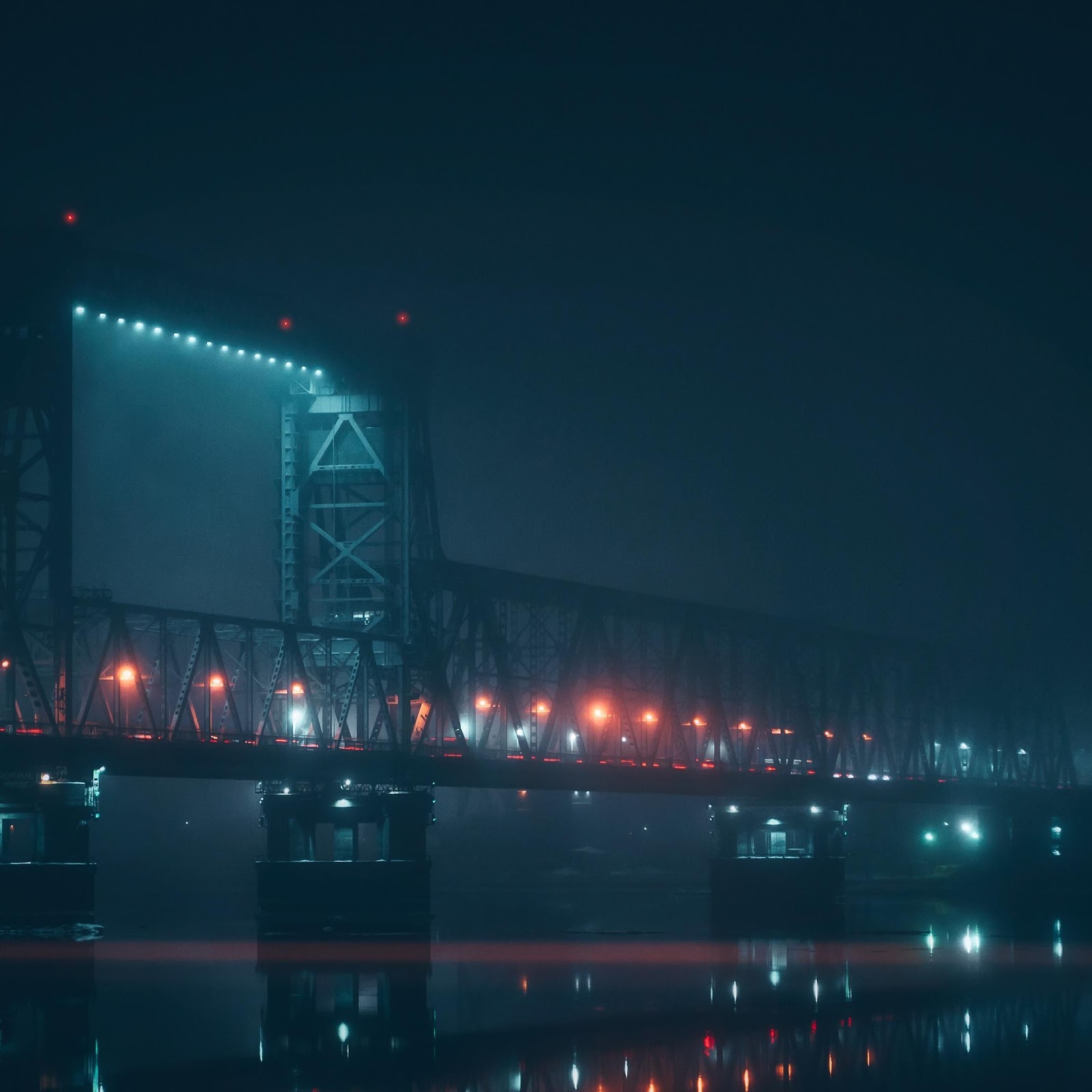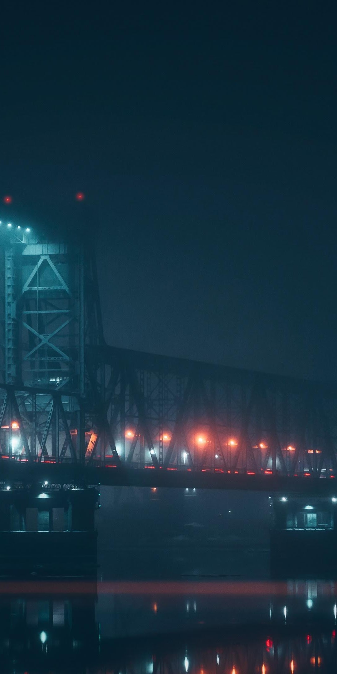Night Bridge, River Reflection, Foggy Landscape, Urban Scene 4K Desktop and Mobile Wallpaper Background with a maximum resolution of 3840x2160 px.
