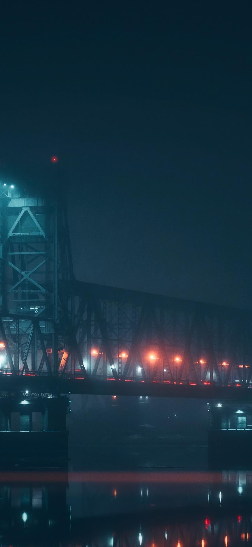 Night Bridge, River Reflection, Foggy Landscape, Urban Scene 4K Phone Wallpaper