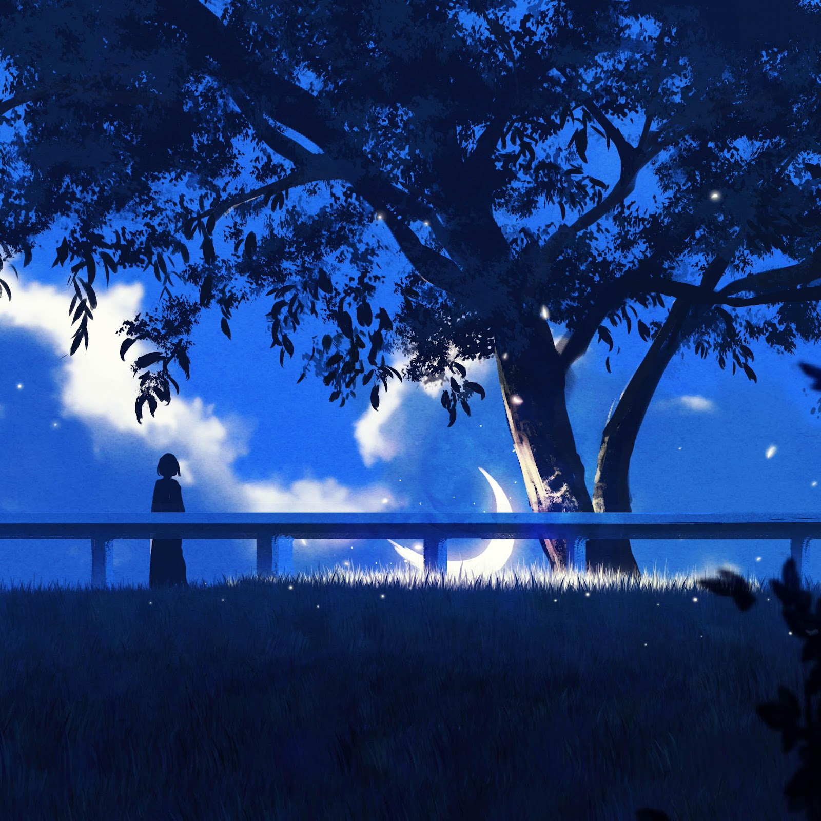 Night Scene, Moonlight, Fantasy, Blue Art 4K Desktop and Mobile Wallpaper Background with a maximum resolution of 4096x2540 px.