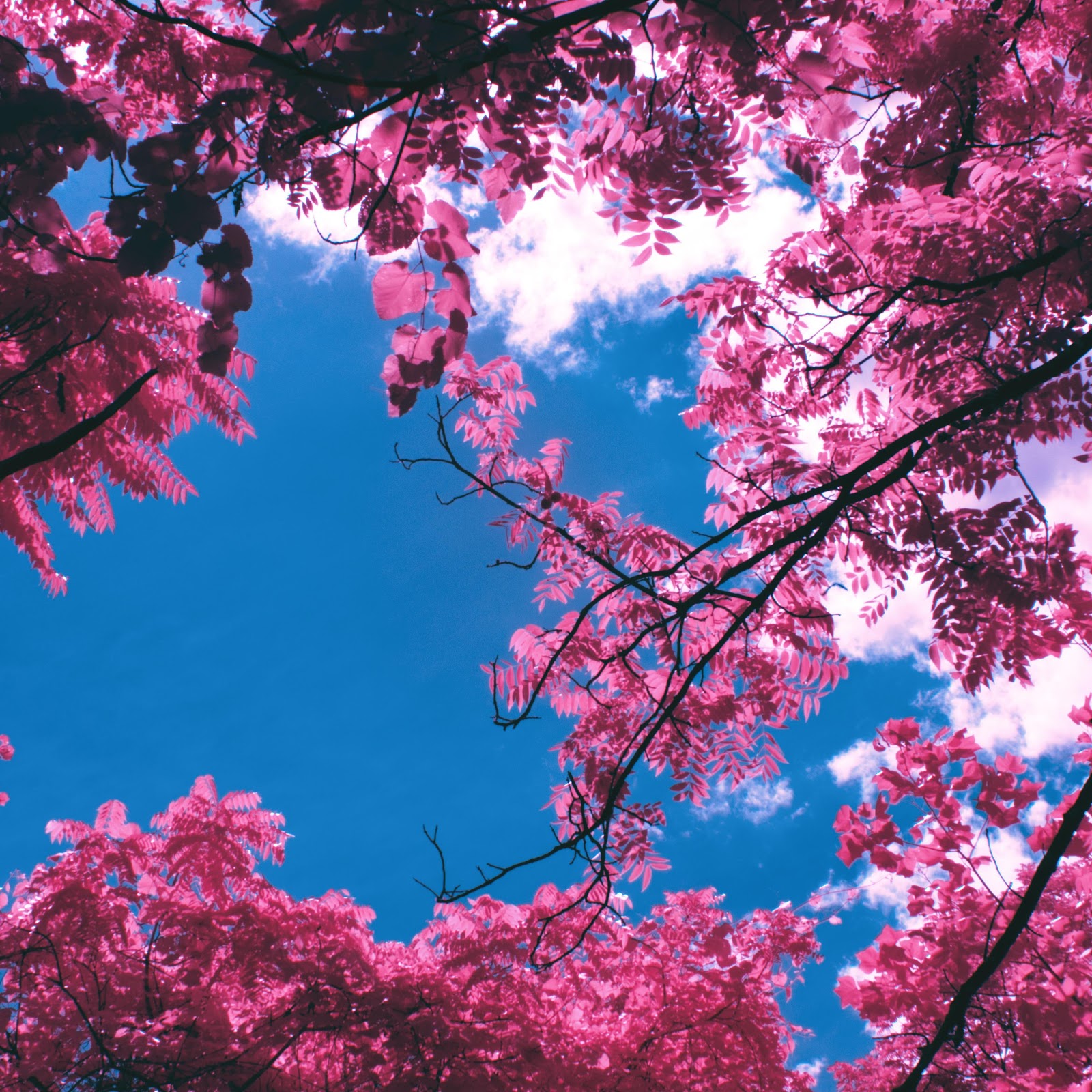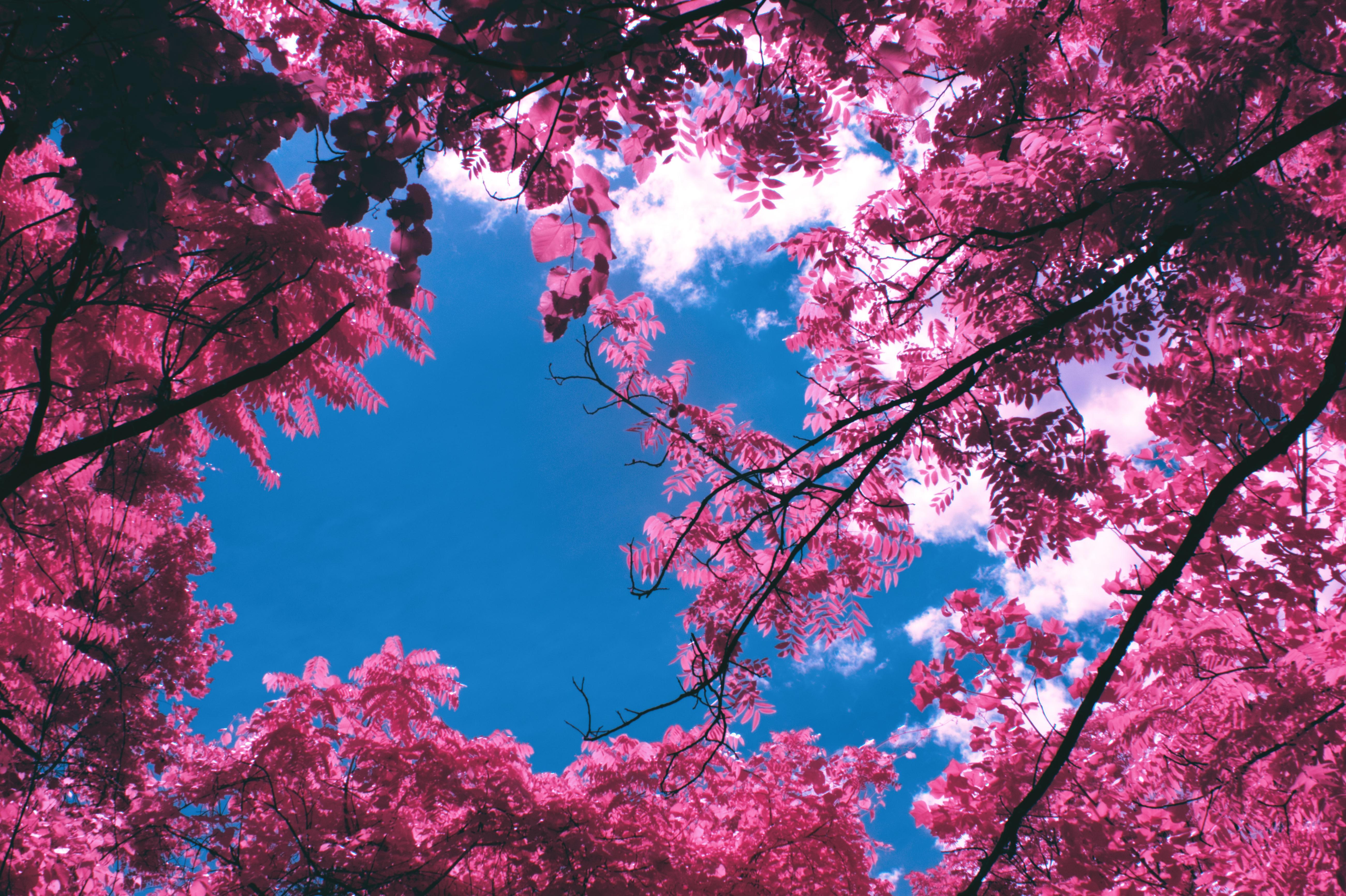 Pink Trees, Sky View, Cloudscape, Springtime 5K Desktop Wallpaper
