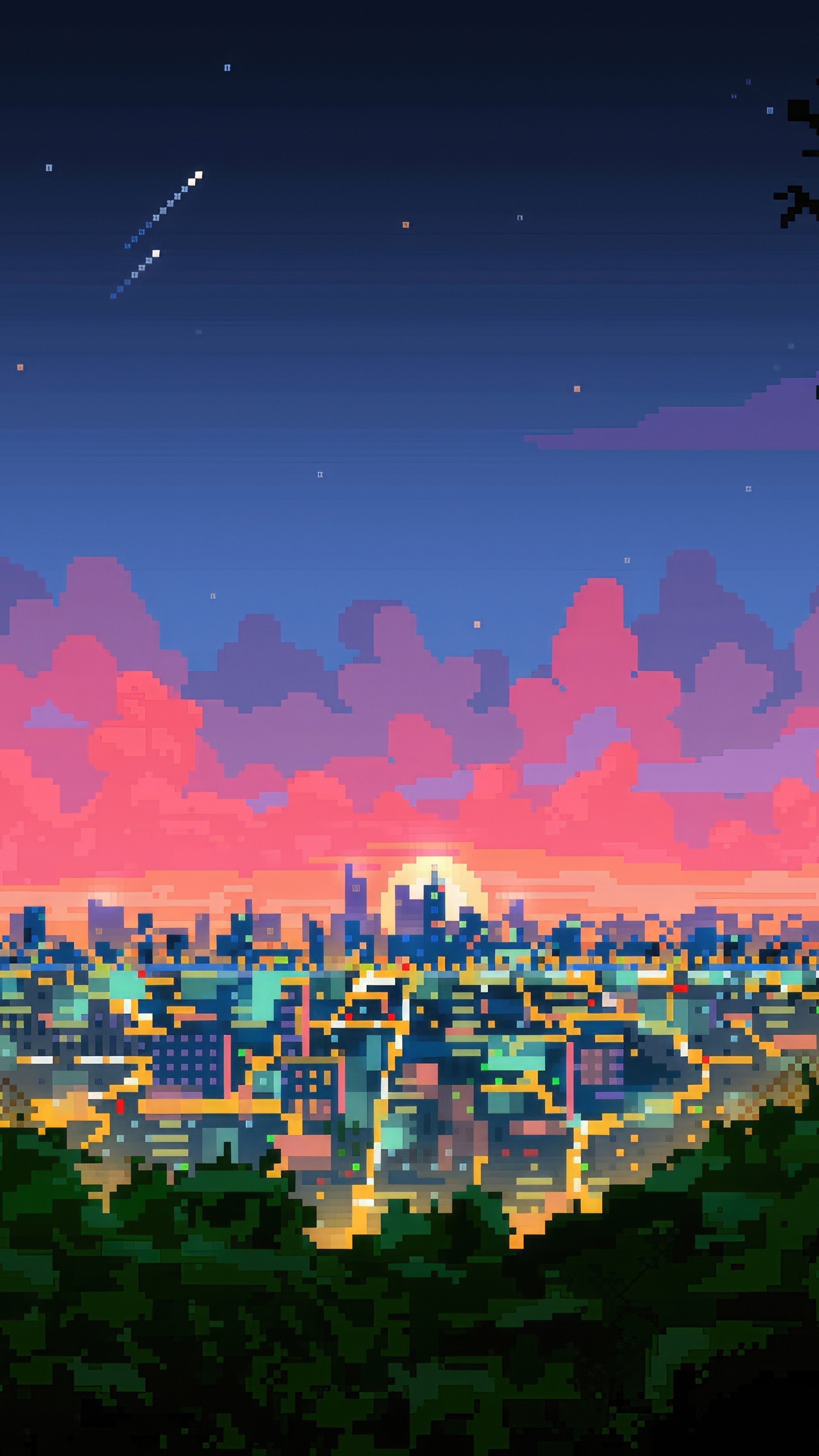 Pixel Art, Cityscape, Sunset, 8-Bit 4K iPhone Wallpaper