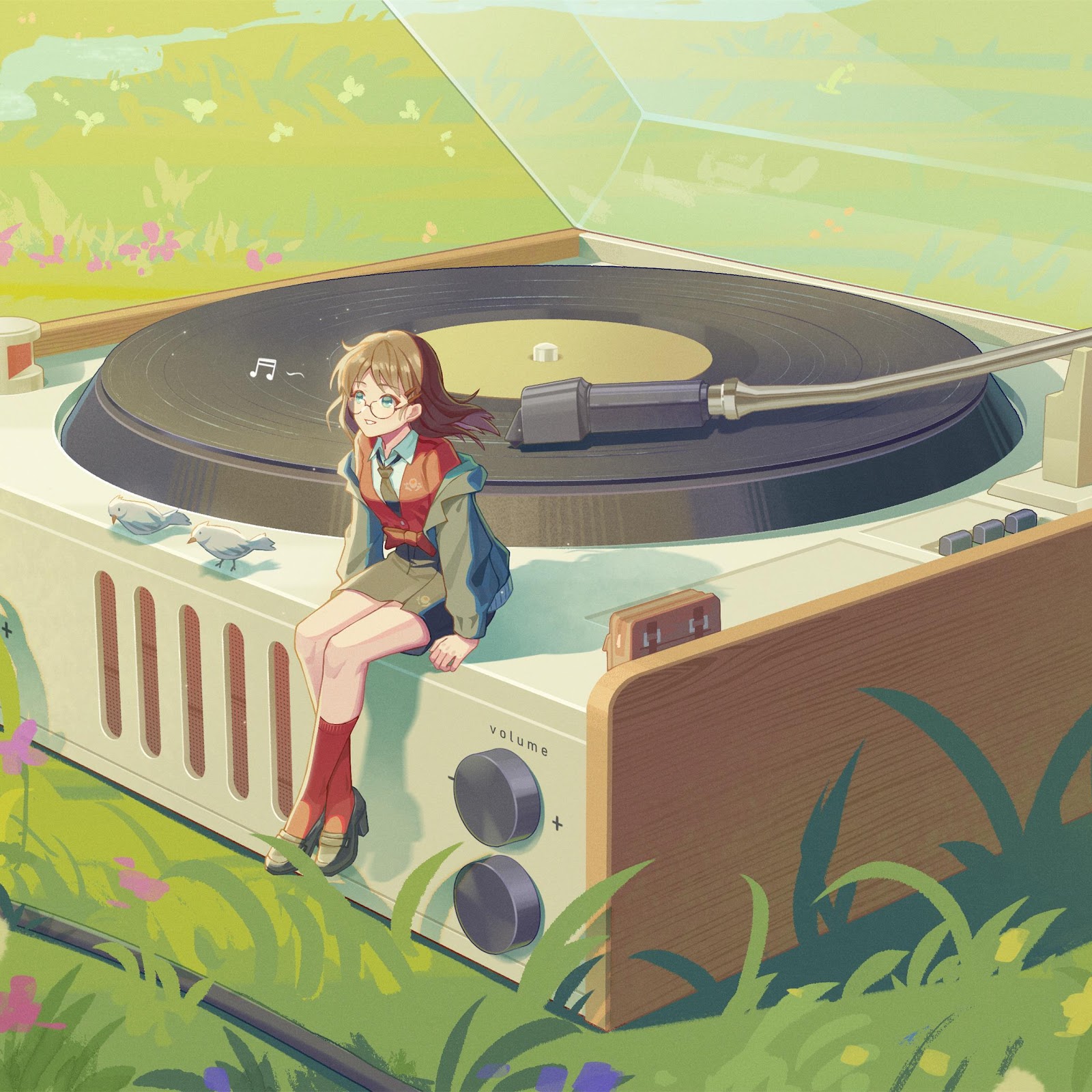 Record Player, Anime Girl, Retro Music, Vintage Audio 4K Desktop and Mobile Wallpaper Background with a maximum resolution of 4027x2265 px.