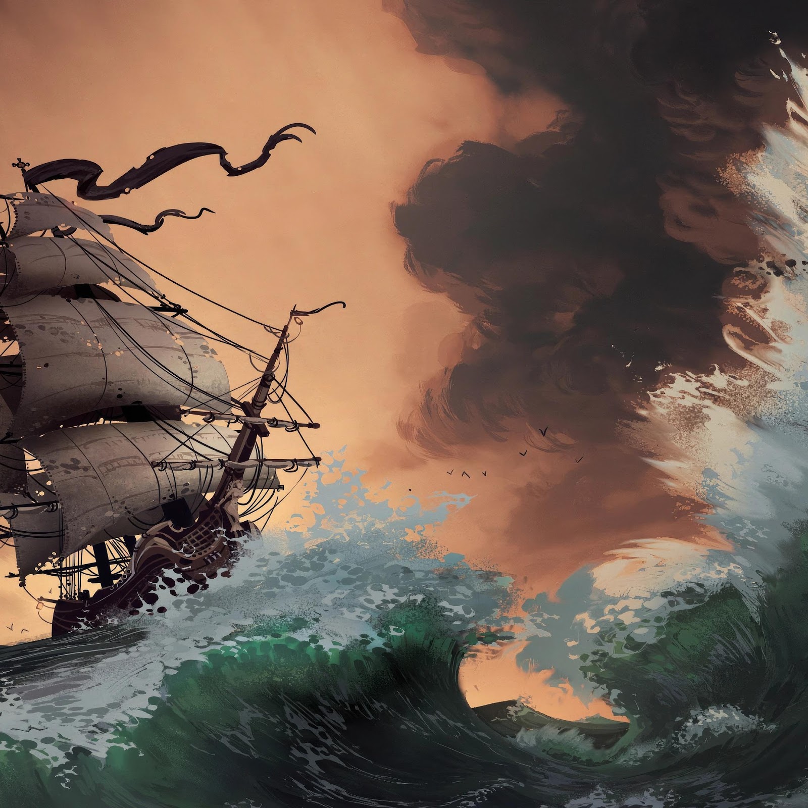 Sailing Ship, Ocean Storm, Sea Illustration, Nautical Art 4K Desktop and Mobile Wallpaper Background with a maximum resolution of 3840x2160 px.