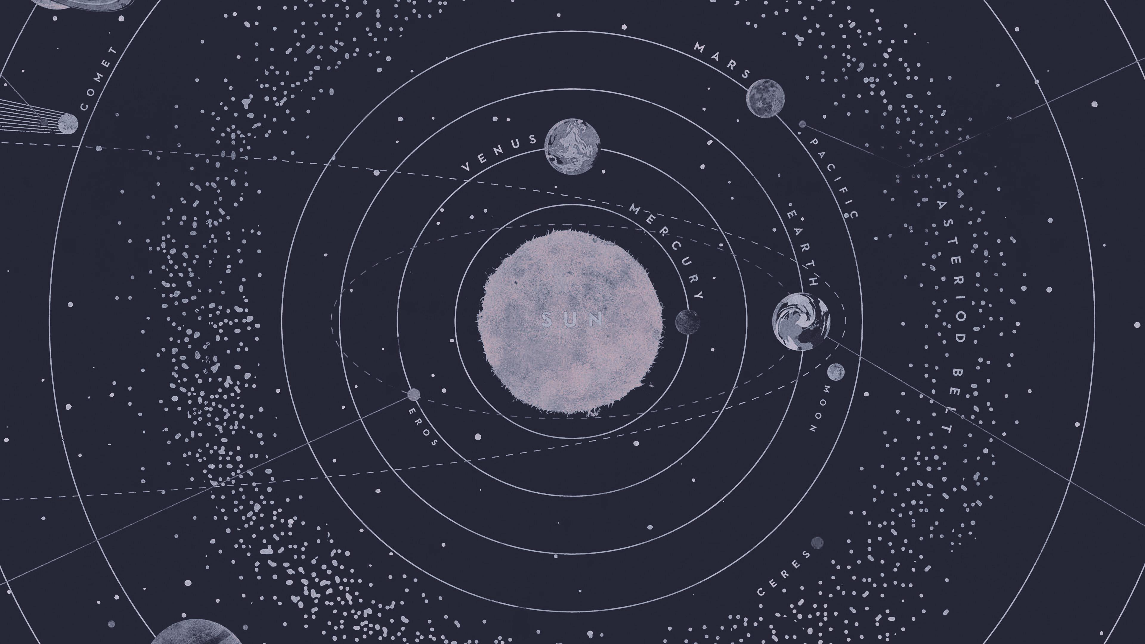 Solar System, Planets, Astronomy, Science 4K Desktop and Mobile Wallpaper Background with a maximum resolution of 3840x2160 px.