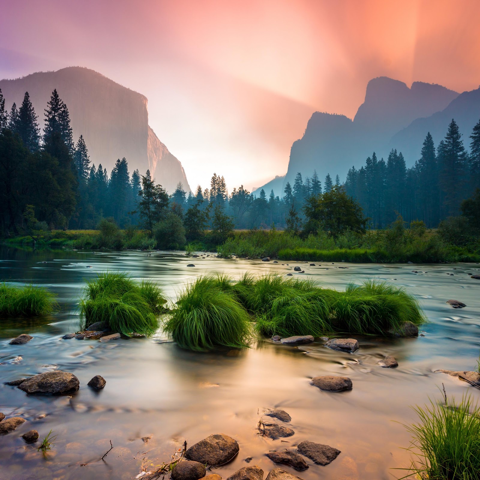 Yosemite National Park, River Landscape, Mountain Scenery, Nature Photography 5K Wallpaper Background (5120x2880)