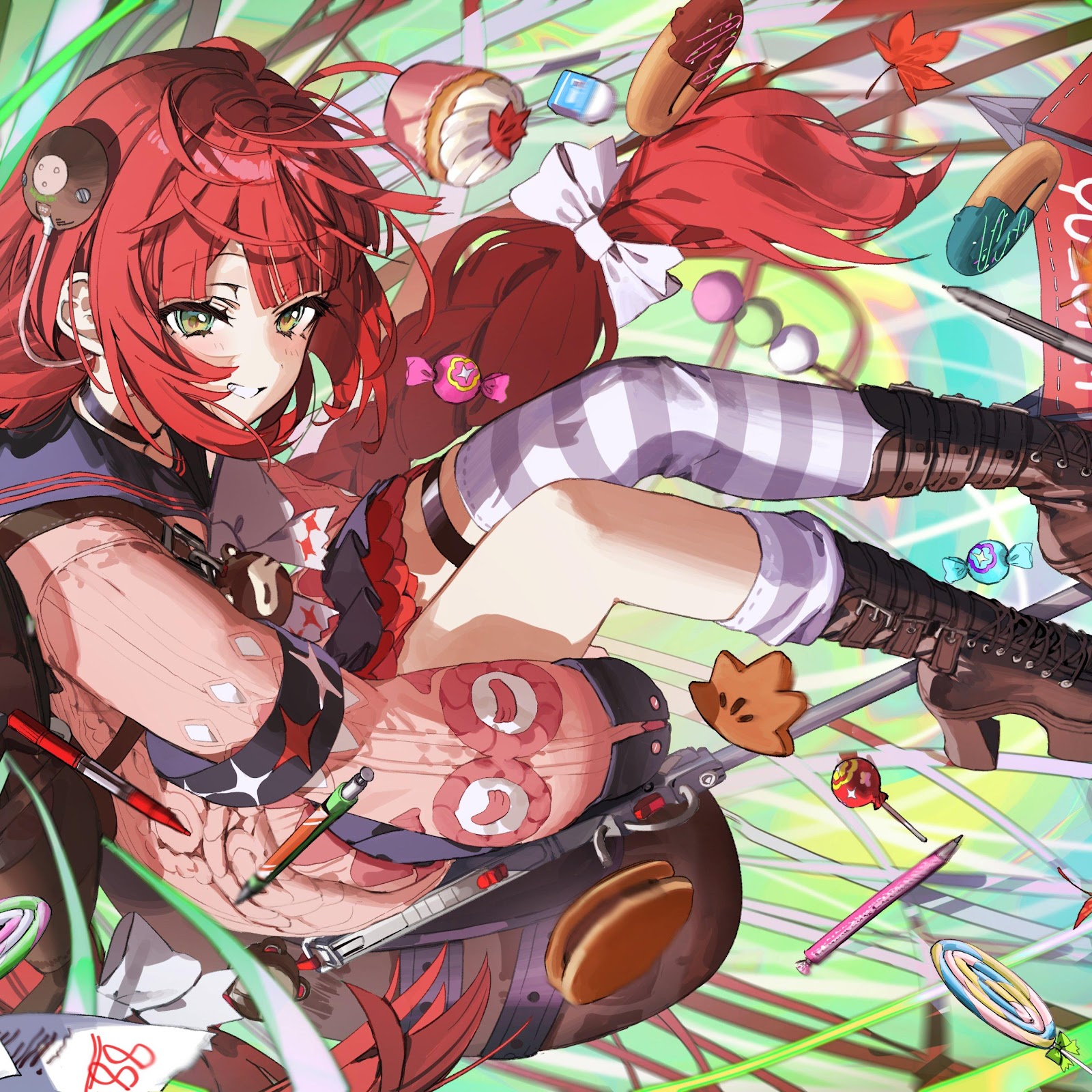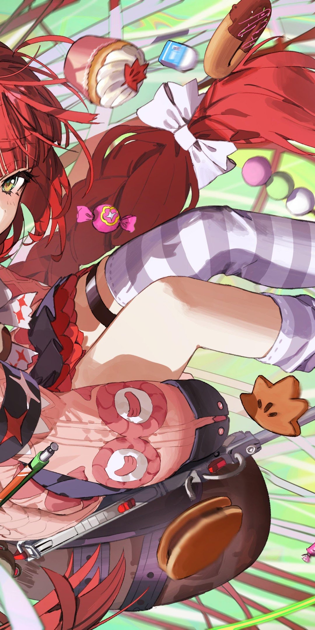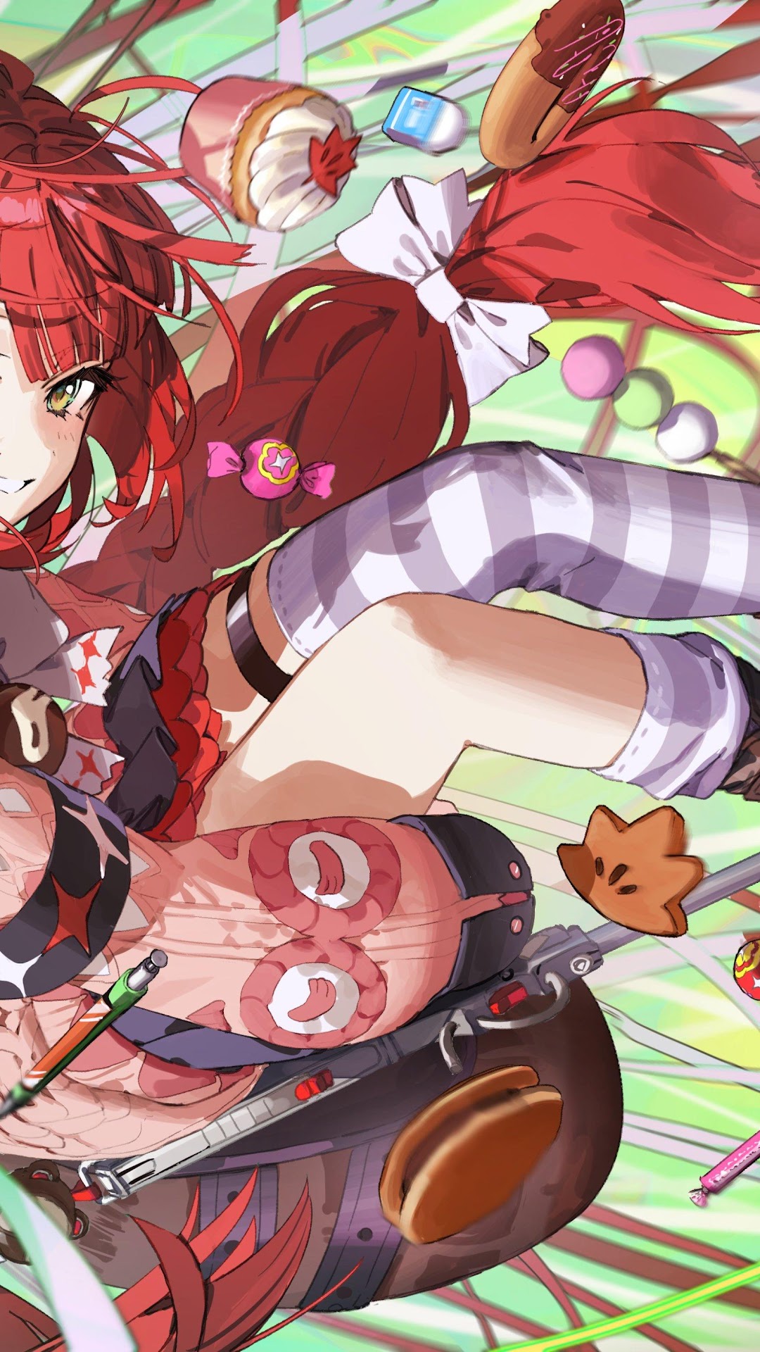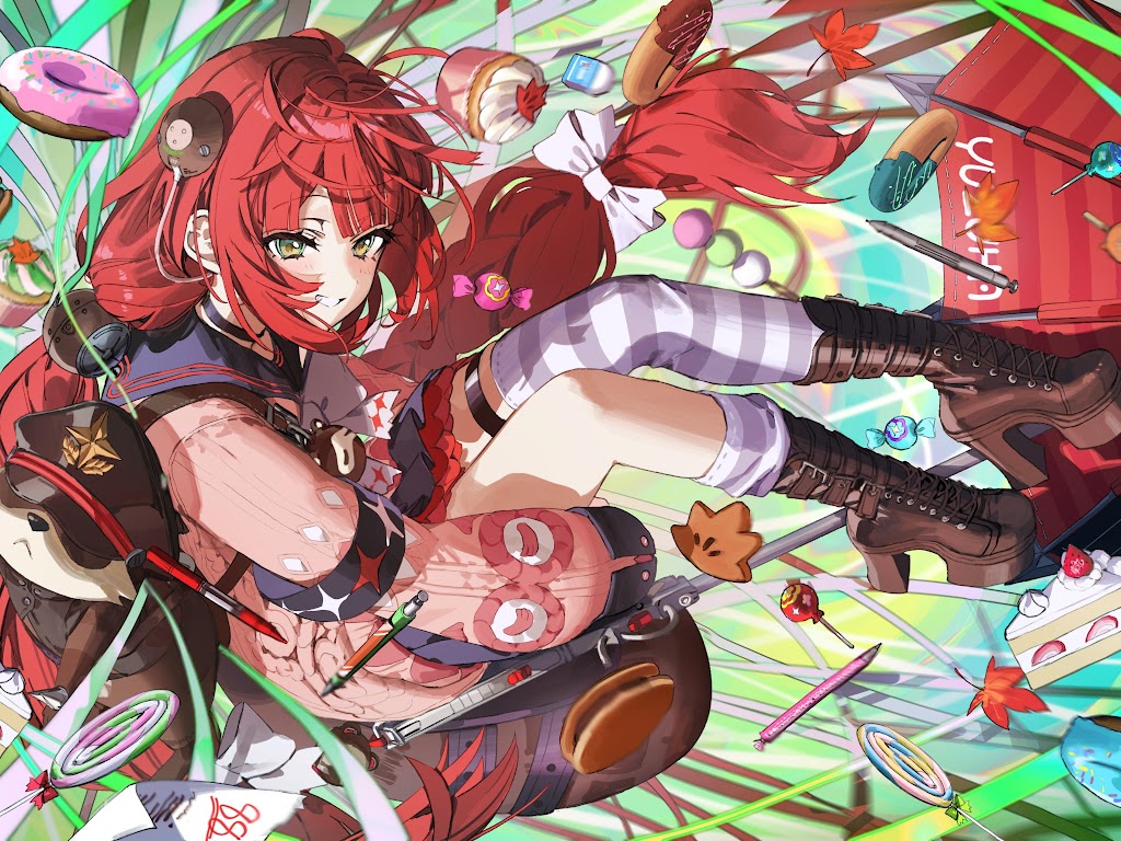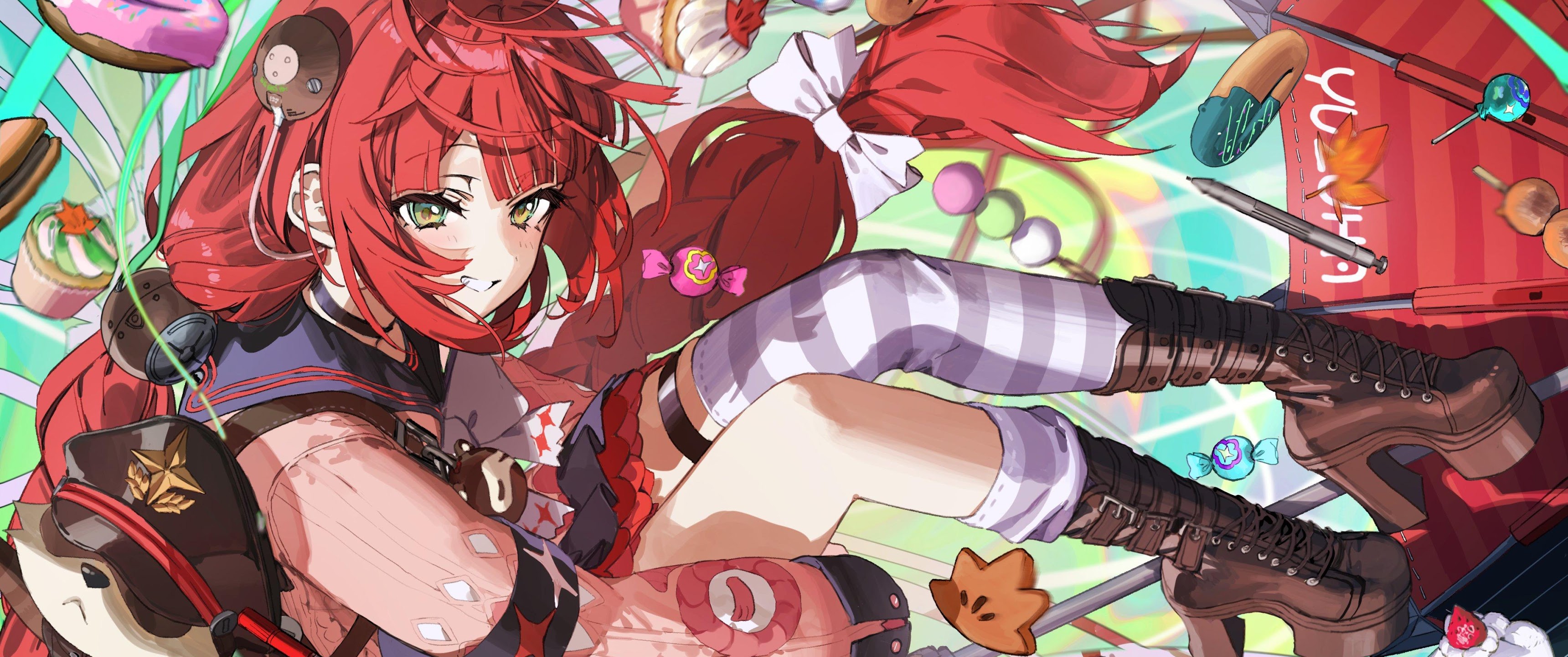 Anime Girl, Red Hair, Desserts, Digital Art 4K Desktop and Mobile Wallpaper Background with a maximum resolution of 4000x2828 px.