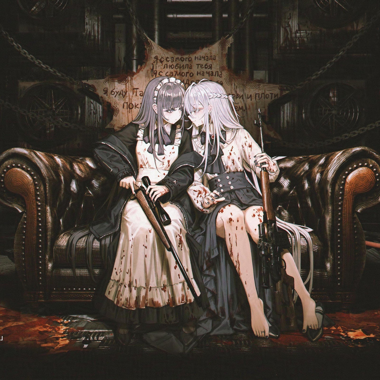 Anime Girls, Gun Girls, Gothic, Dark Aesthetic 4K Phone Wallpaper