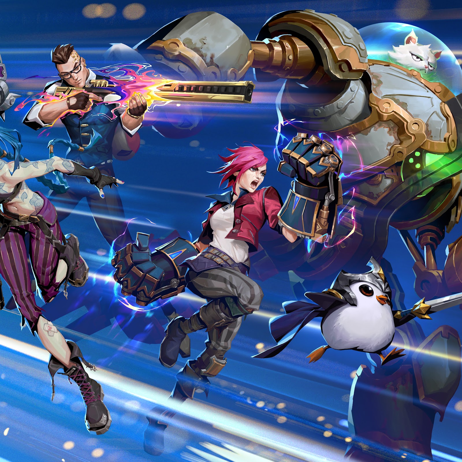 Arcane, League Of Legends, Jinx, Vi 8K Desktop and Mobile Wallpaper Background with a maximum resolution of 10000x5625 px.