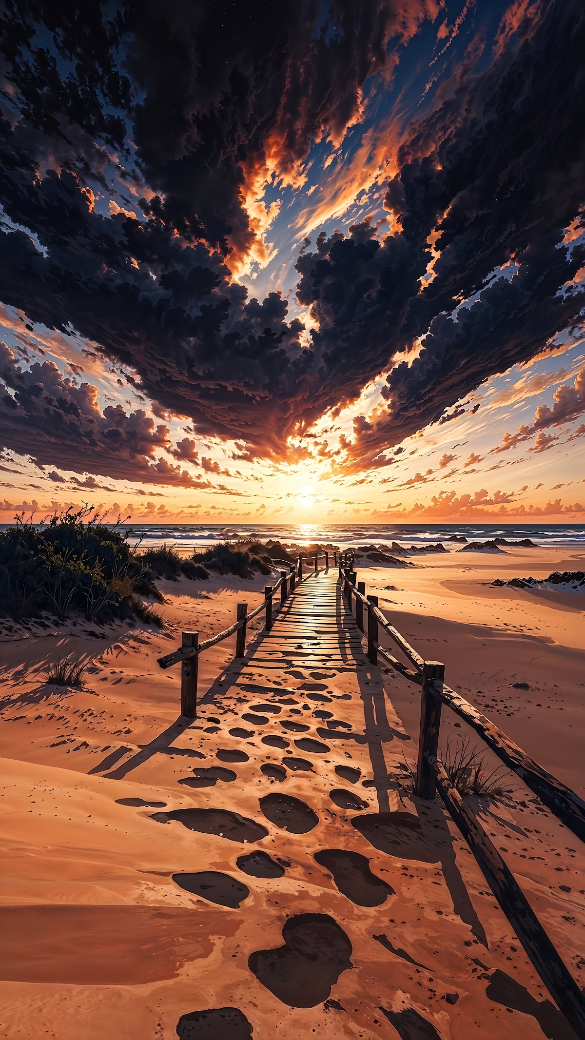 Beach Sunset, Coastal Landscape, Ocean View, Dramatic Sky 4K iPhone Wallpaper Background (2304x4096)