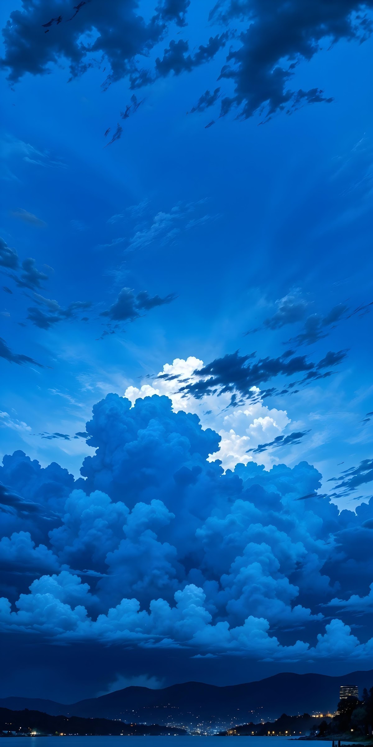 Blue Sky, Cumulus Clouds, Atmospheric, Nightscape 2K iPhone Wallpaper Background (2048x4096)
