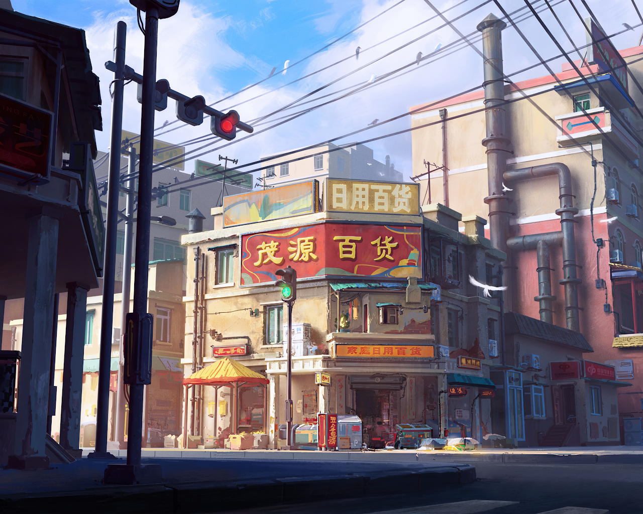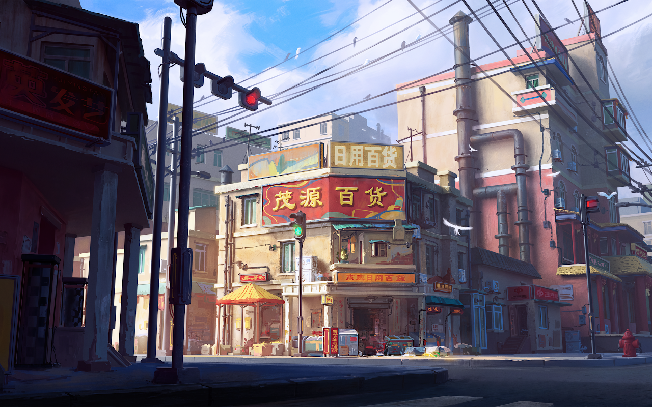 Cityscape, Asian Architecture, Street Scene, Urban Art 4K Desktop Wallpaper