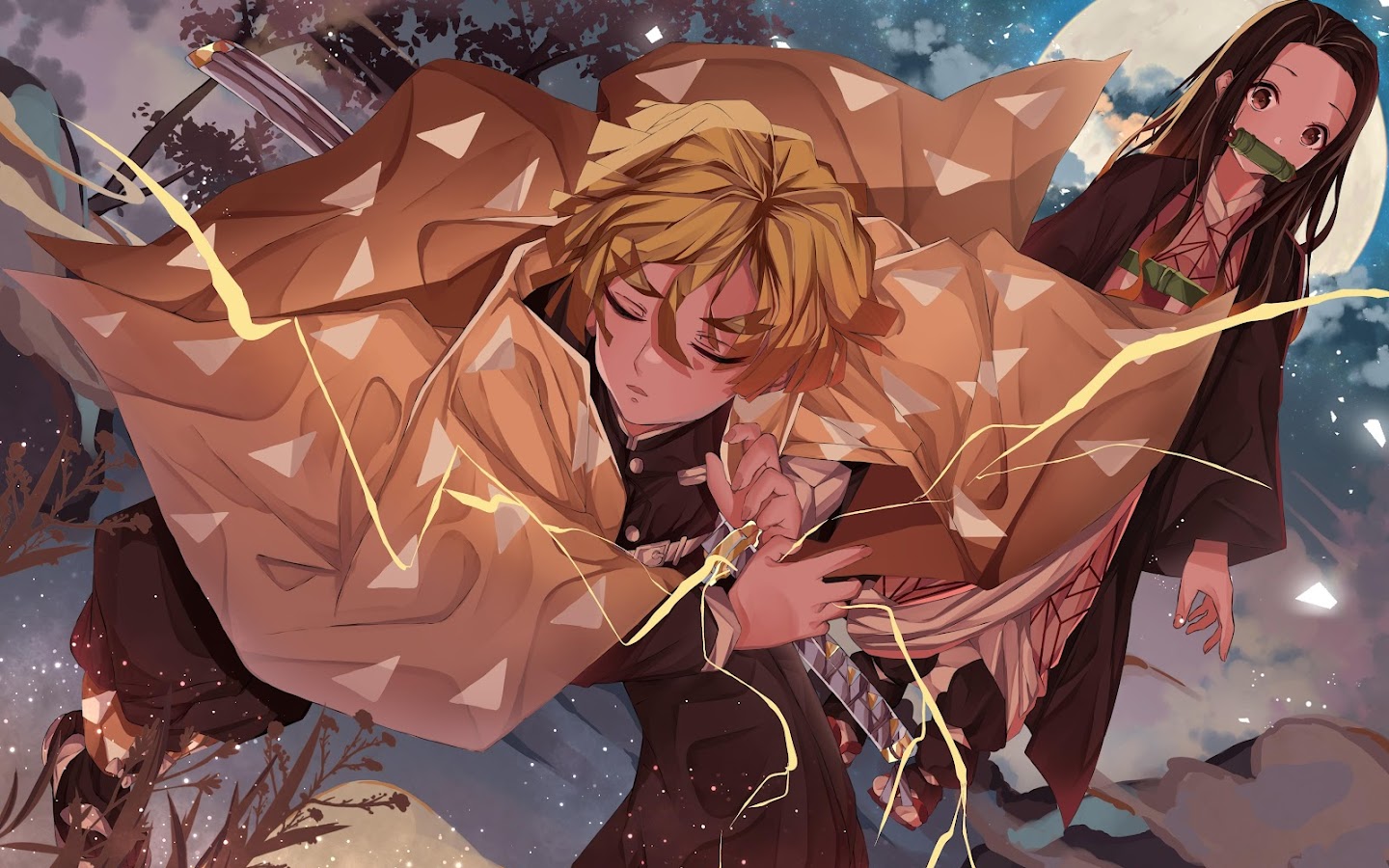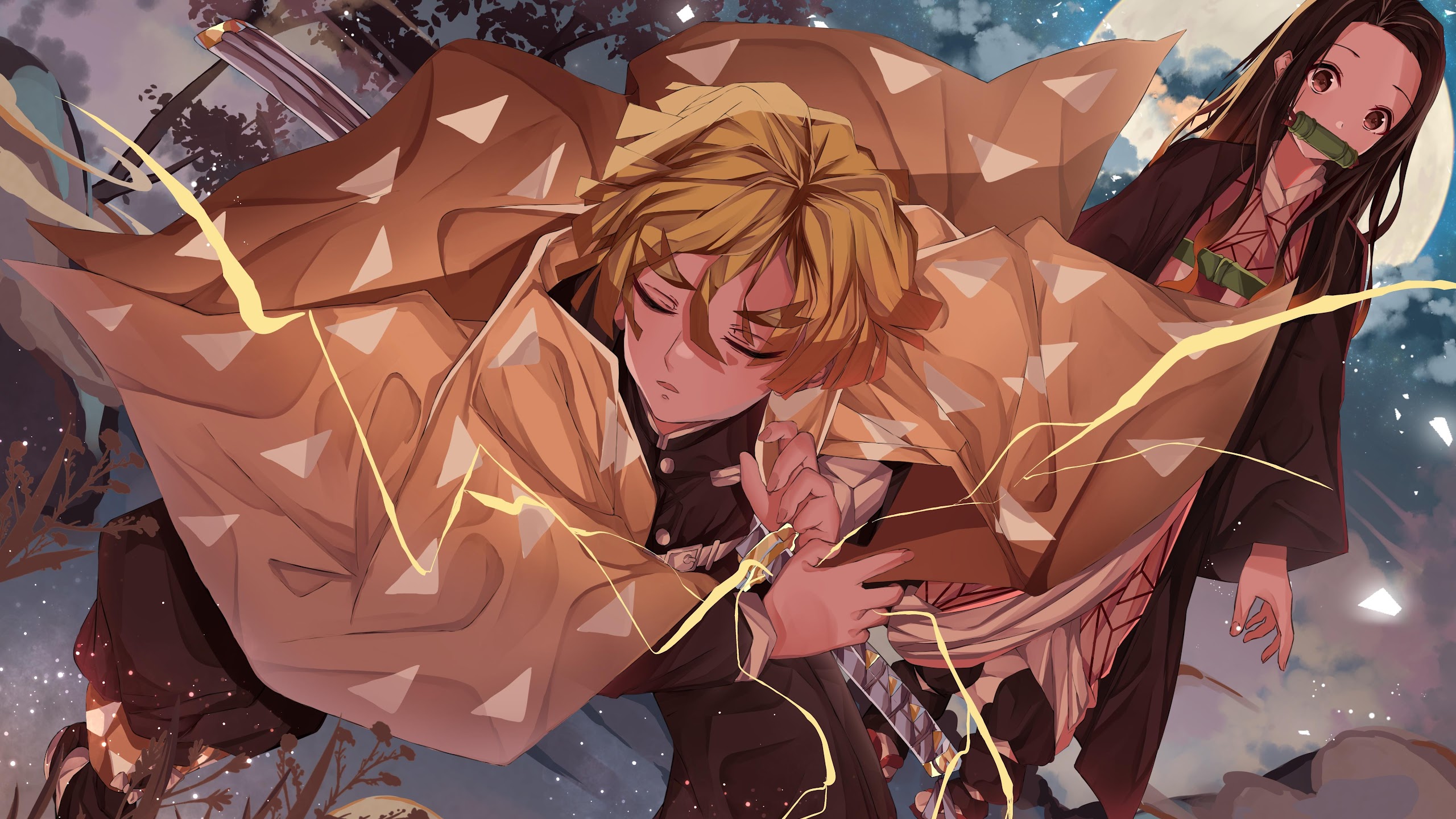 Demon Slayer, Anime, Zenitsu, Nezuko 5K Desktop Wallpaper