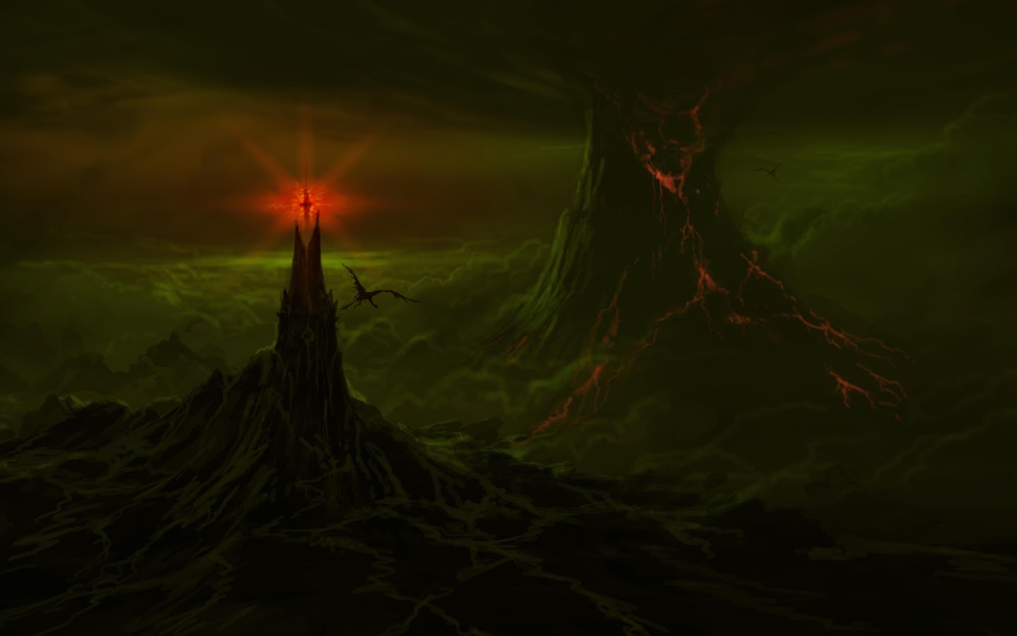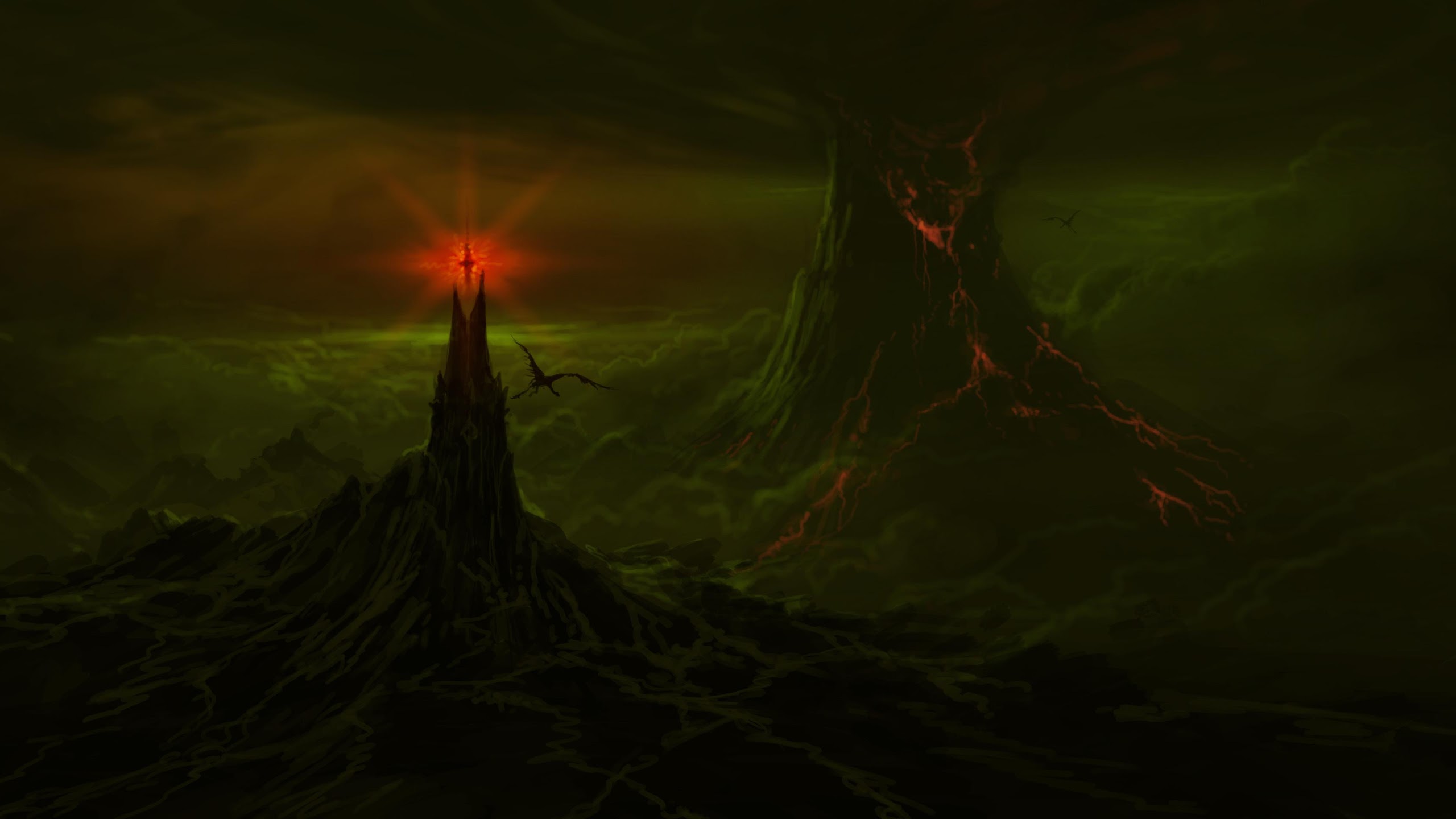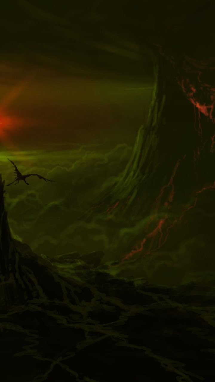 Fantasy Landscape, Dragon, Tower, Volcano 2K Phone Wallpaper