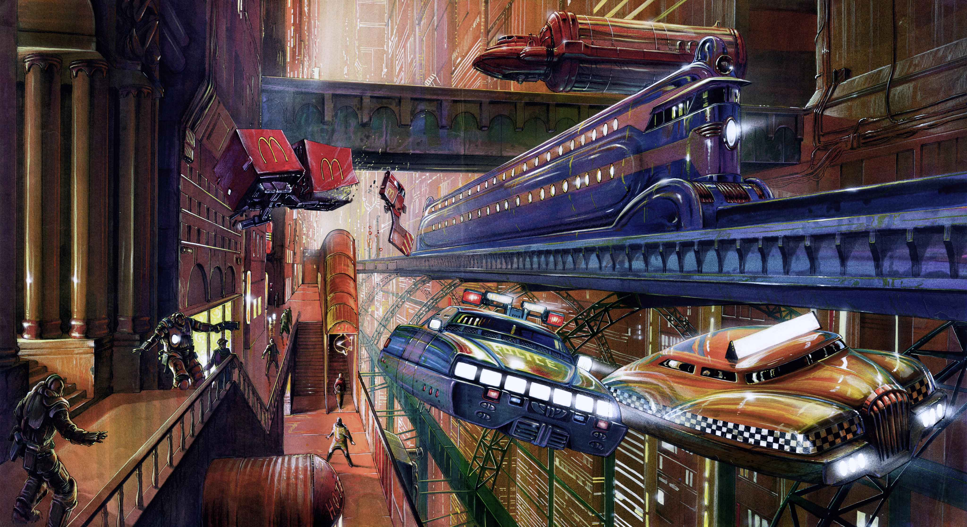 Futuristic City, Science Fiction, Cyberpunk, Urban Fantasy 4K Desktop and Mobile Wallpaper Background with a maximum resolution of 4096x2234 px.