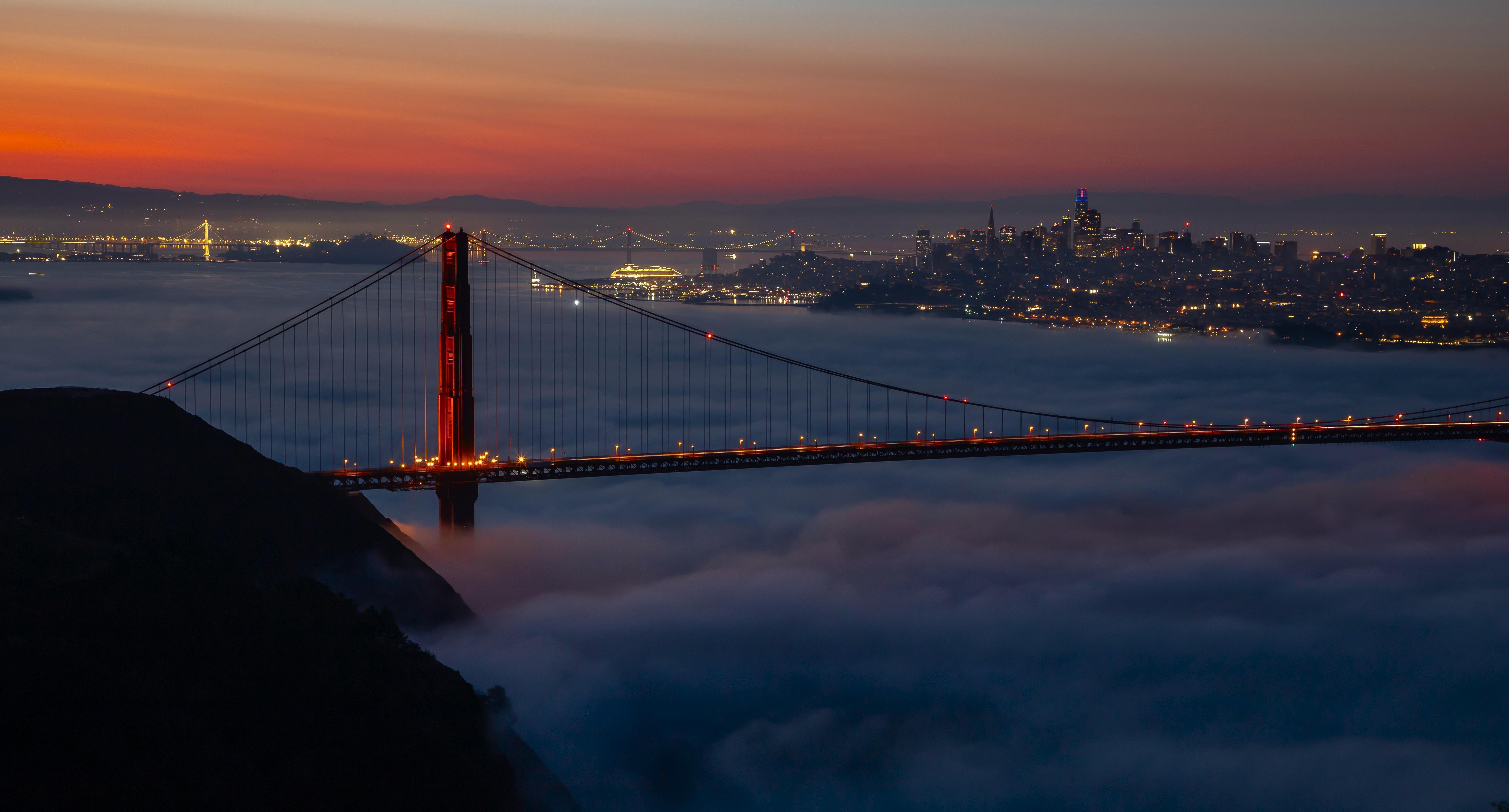 Golden Gate Bridge, San Francisco, California, Cityscape 5K Desktop and Mobile Wallpaper Background with a maximum resolution of 5974x3216 px.