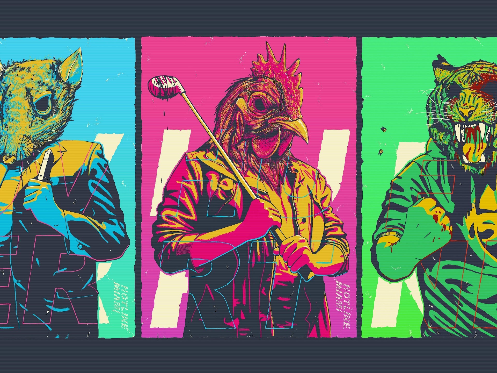 Hotline Miami, Video Game, Animal Masks, Retro Art 5K Desktop Wallpaper