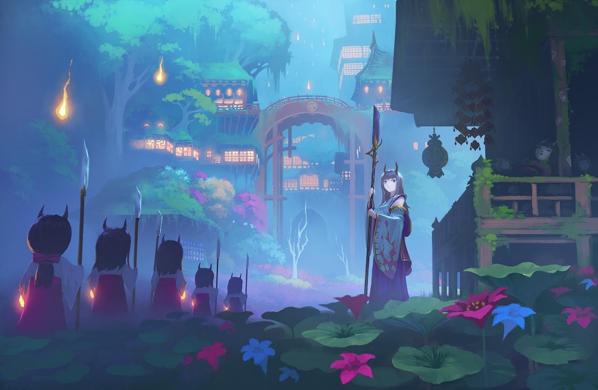 Japanese Art, Anime Landscape, Fantasy Town, Digital Painting Full HD Desktop and Mobile Wallpaper Background with a maximum resolution of 2000x1303 px.