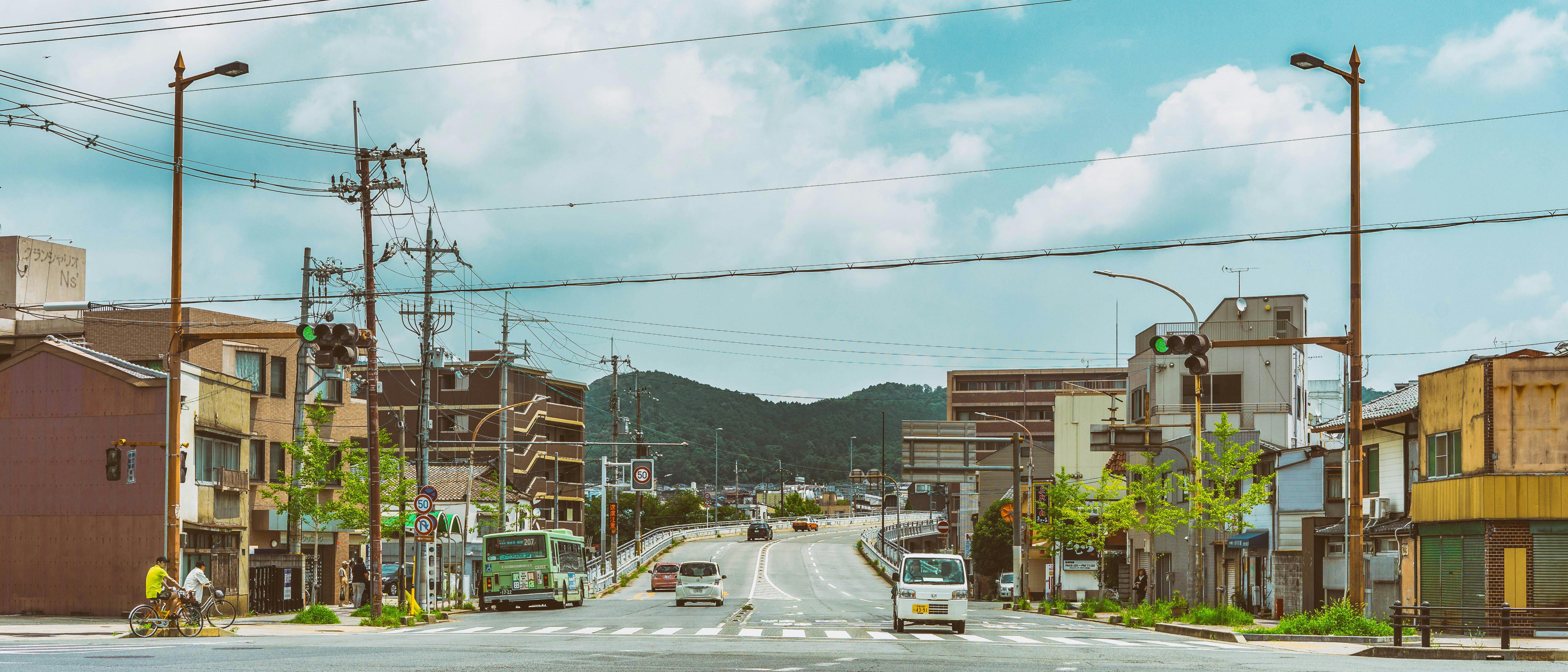 Japanese Street, Cityscape, Urban Scene, Asian Architecture 4K Ultrawide Desktop Wallpaper