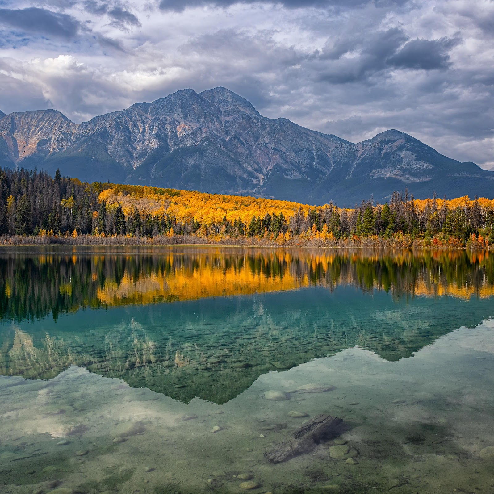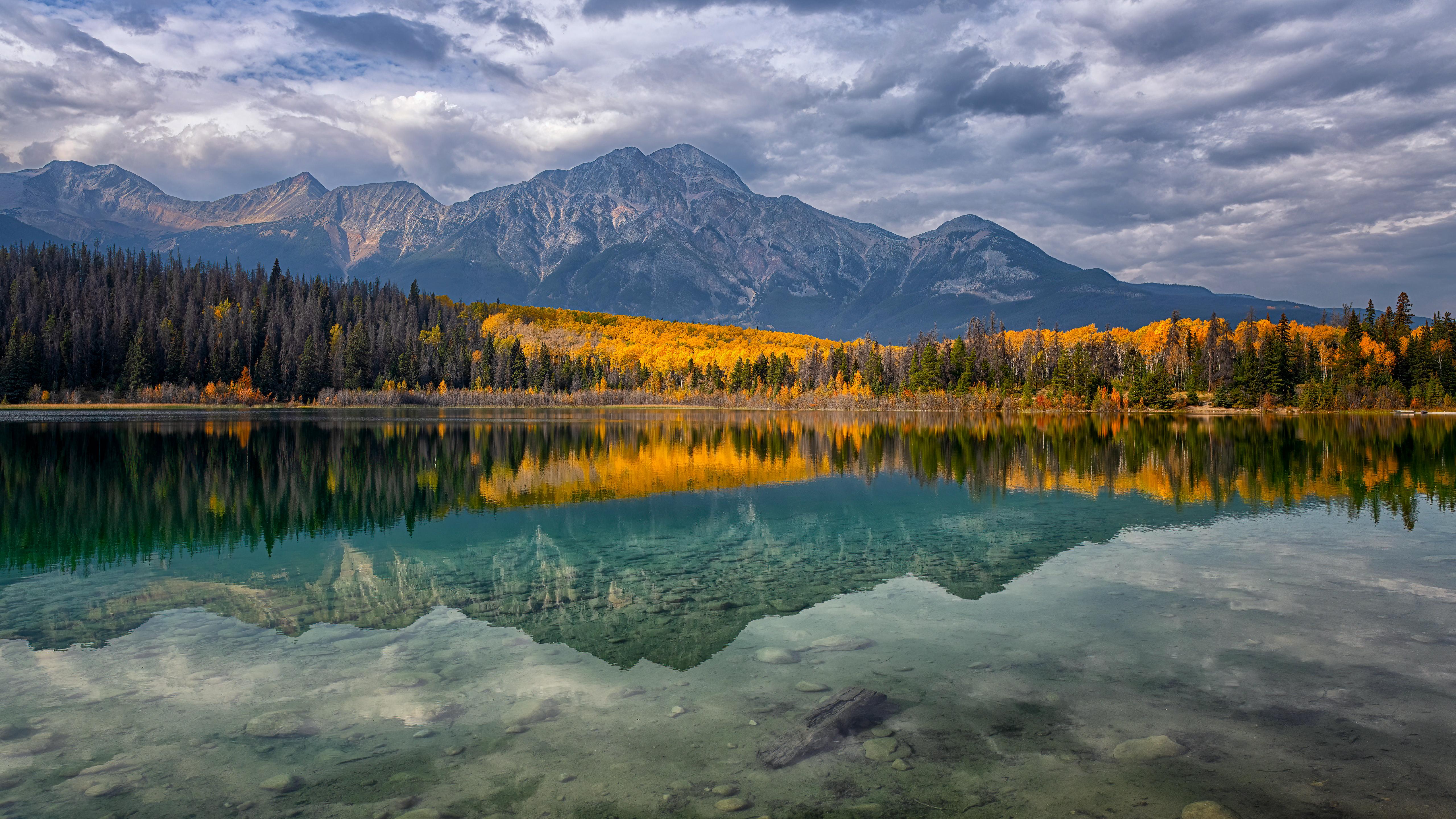 Mountain Landscape, Lake Reflection, Autumn Scenery, Jasper National Park 5K Desktop Wallpaper