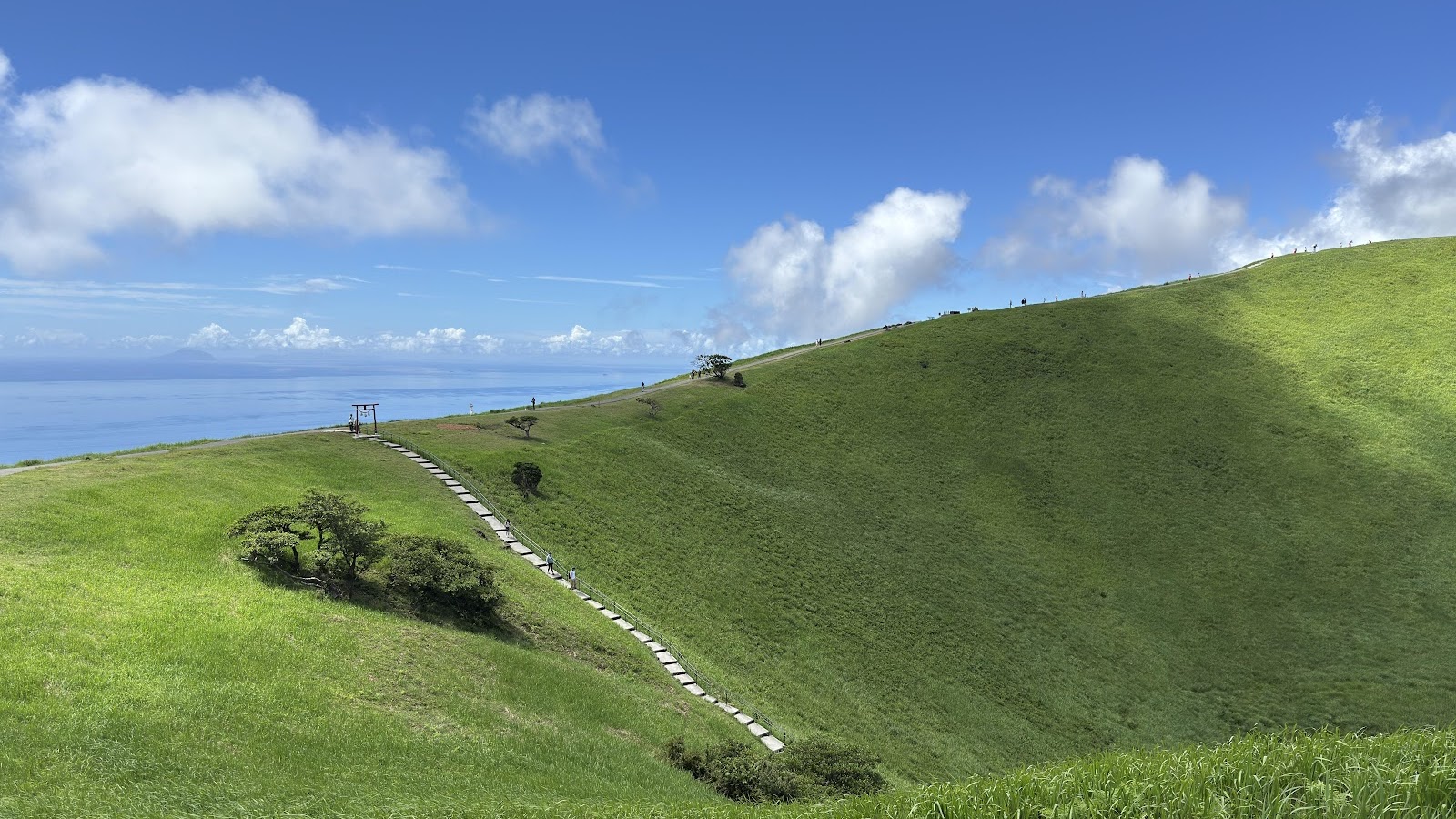 Mountain Scenery, Green Hills, Hiking Trail, Torii Gate 8K Desktop Wallpaper