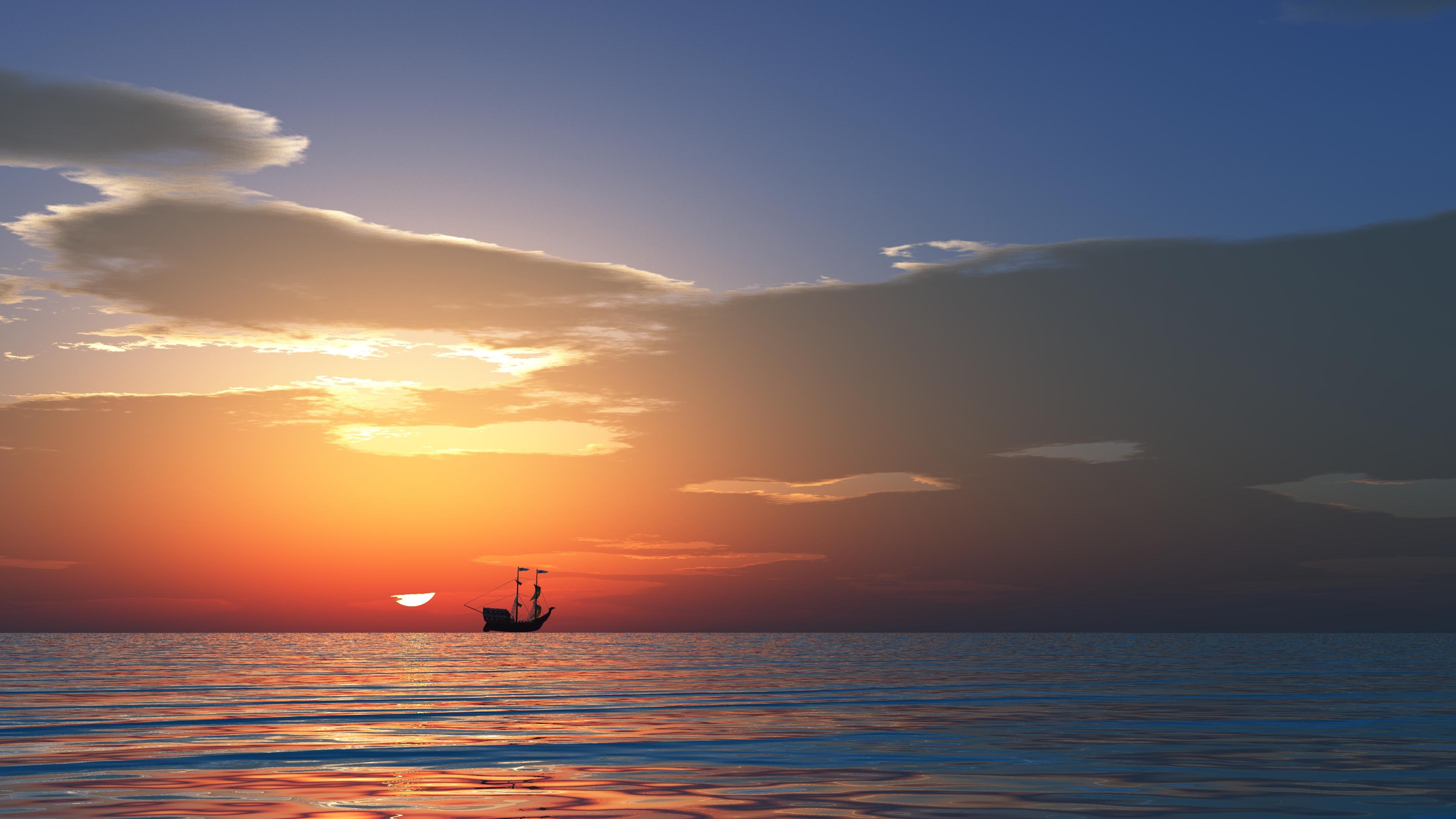 Ocean, Sunset, Sailboat, Sea 4K Desktop and Mobile Wallpaper Background with a maximum resolution of 3840x2160 px.