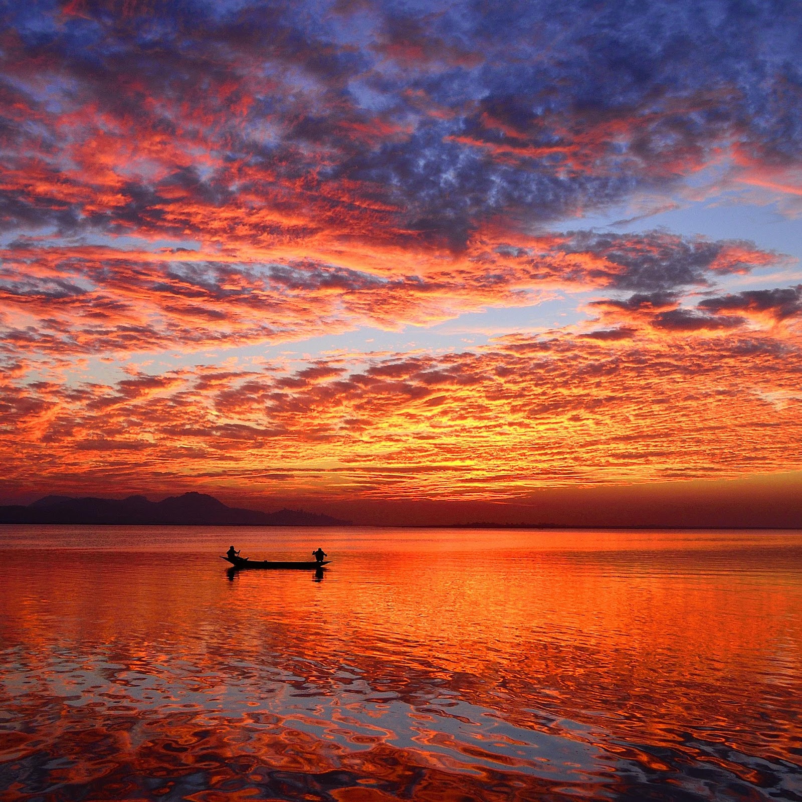 Sunset, Ocean, Boat, Clouds 2K Desktop and Mobile Wallpaper Background with a maximum resolution of 3600x2384 px.