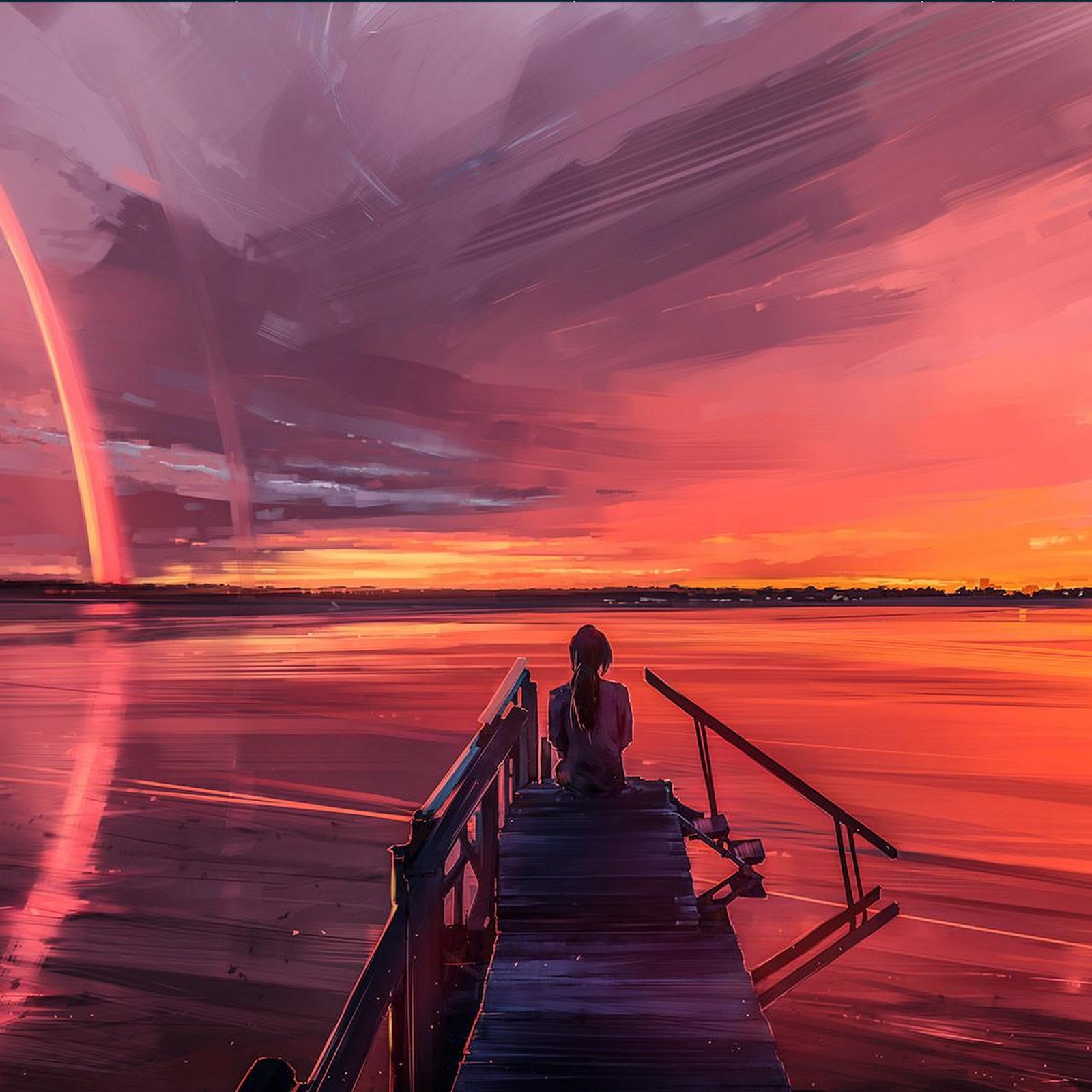 Sunset, Pier, Artwork, Water Full HD Desktop and Mobile Wallpaper Background with a maximum resolution of 1920x1080 px.