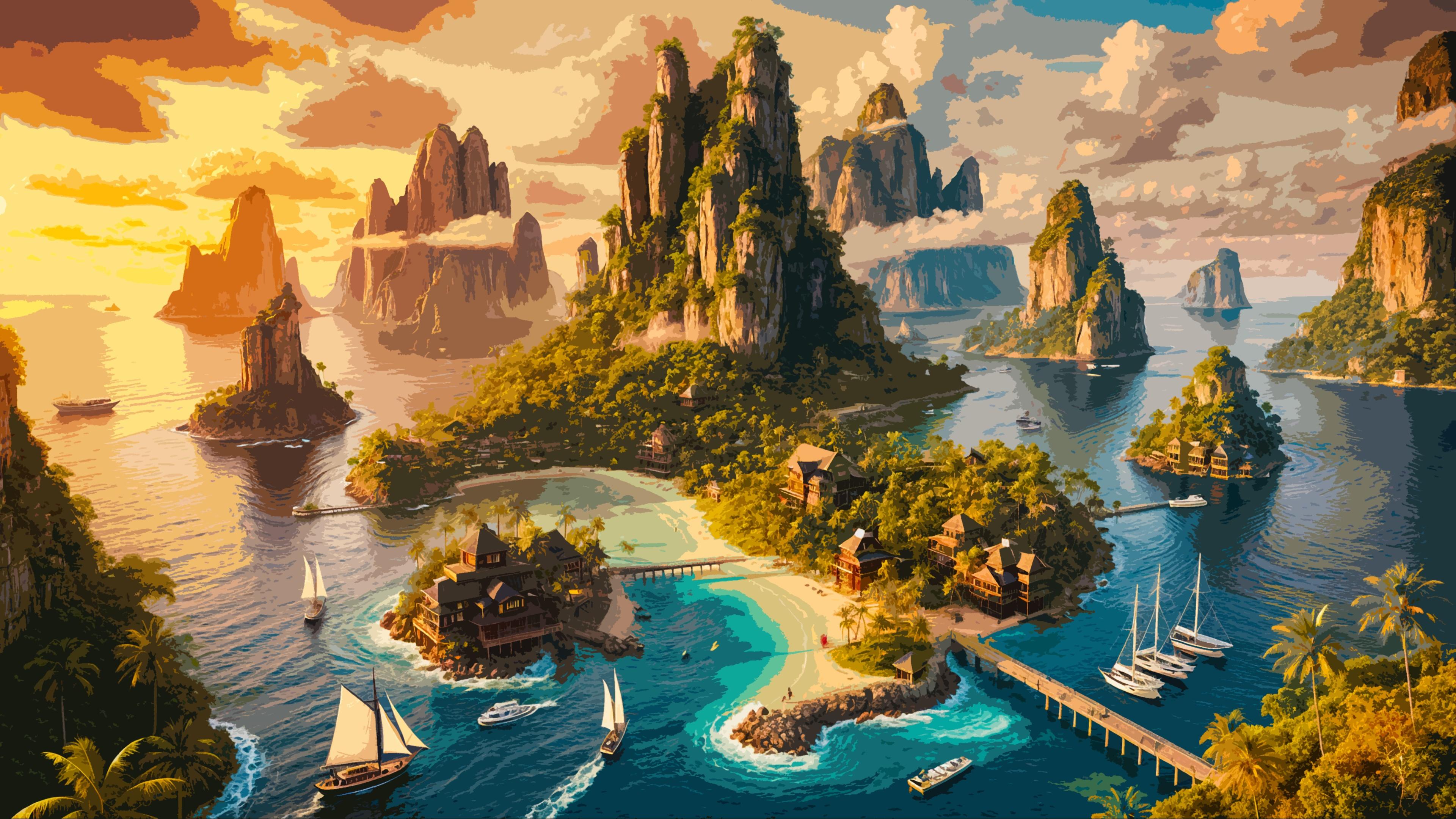 Tropical Island, Ocean Landscape, Southeast Asia, Coastal Scenery 4K Desktop and Mobile Wallpaper Background with a maximum resolution of 3840x2160 px.
