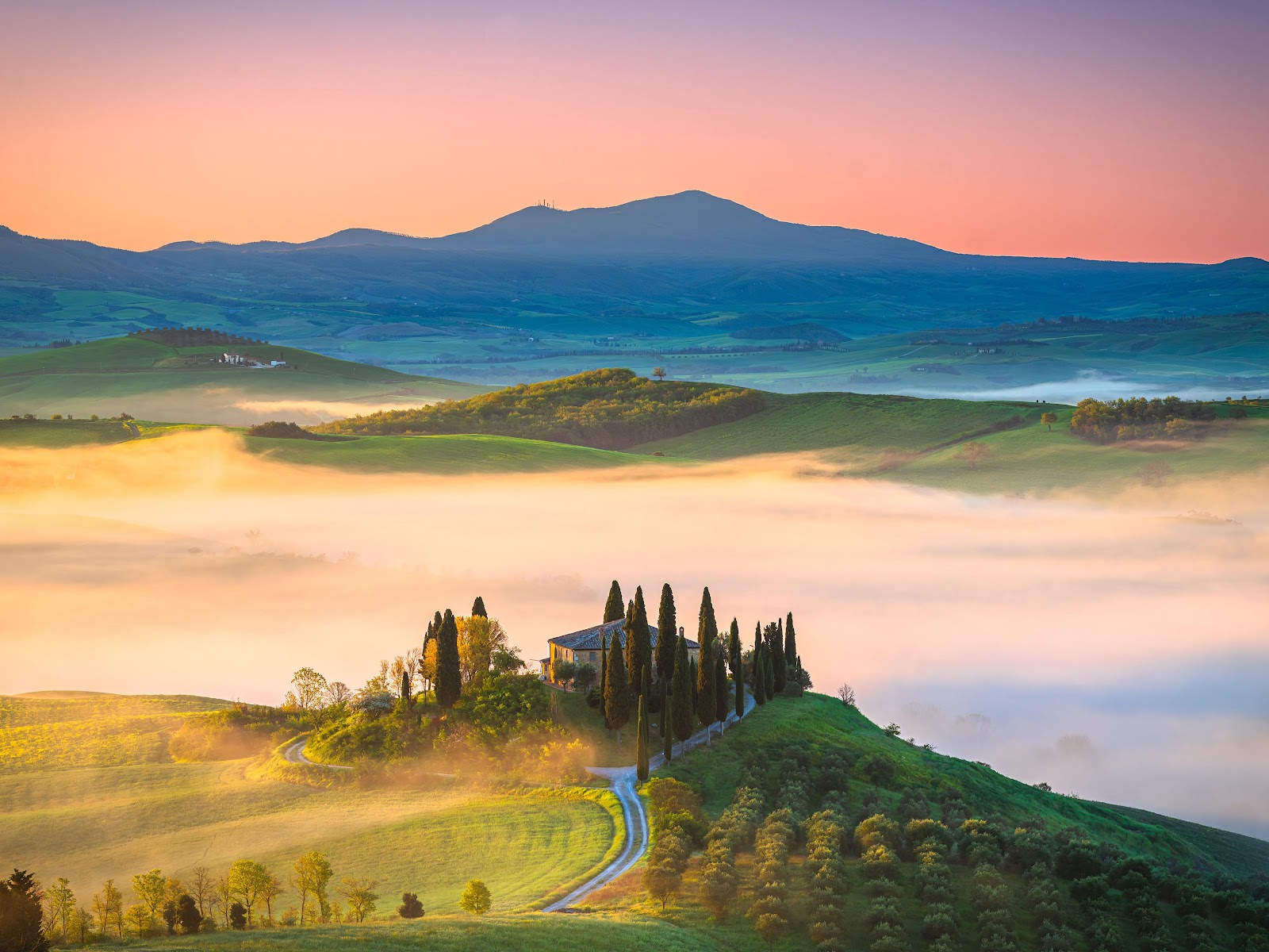 Tuscany, Italy, Landscape, Sunrise 5K Desktop Wallpaper