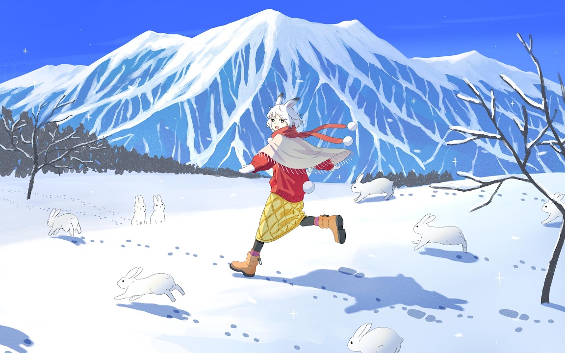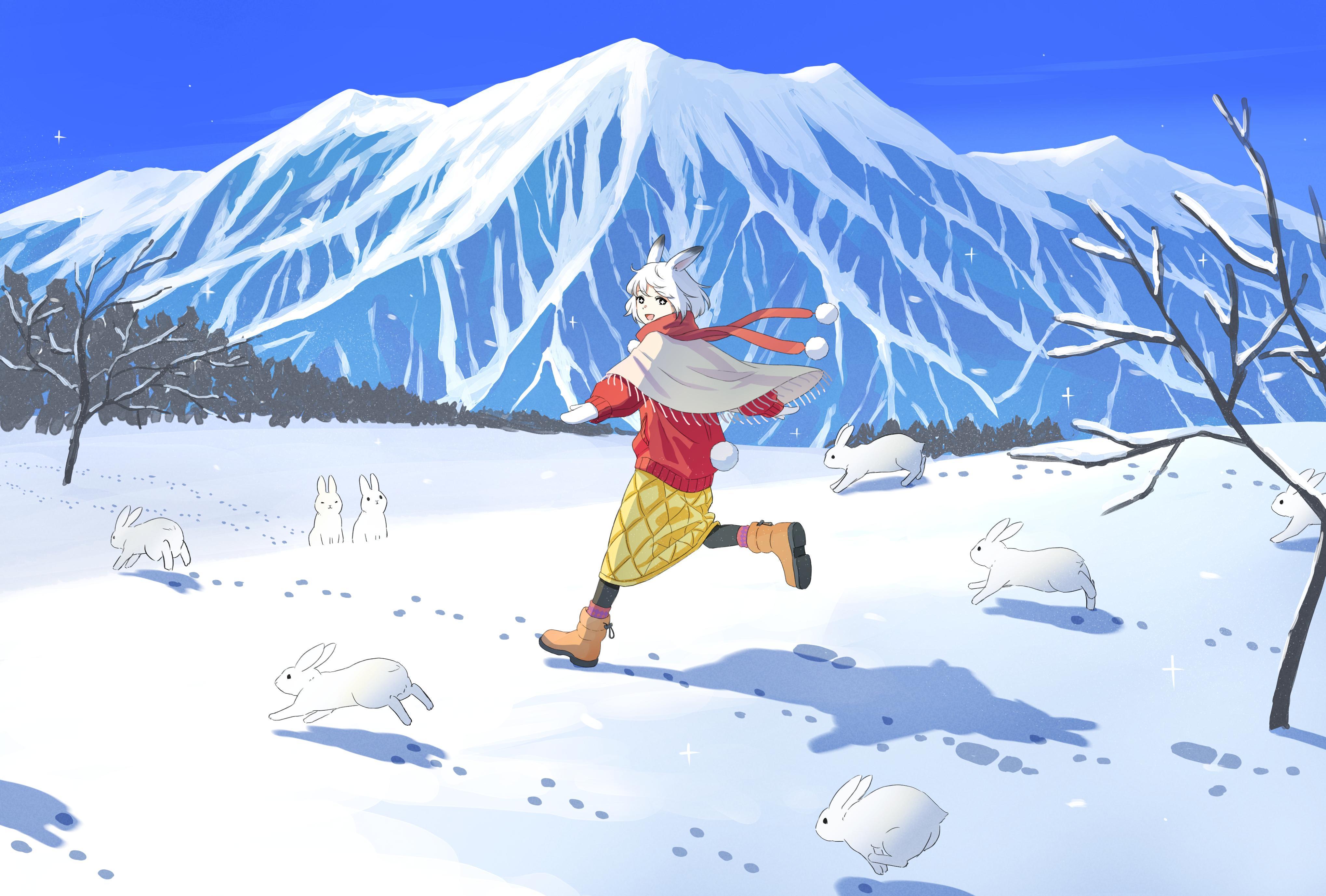 Winter, Anime, Snow, Rabbit 4K Desktop and Mobile Wallpaper Background with a maximum resolution of 4078x2756 px.