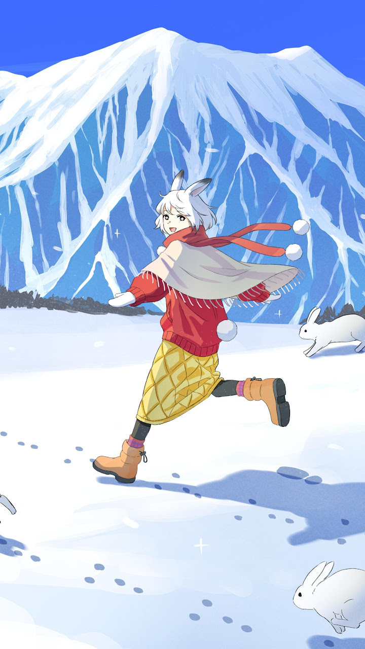 Winter, Anime, Snow, Rabbit 4K Phone Wallpaper
