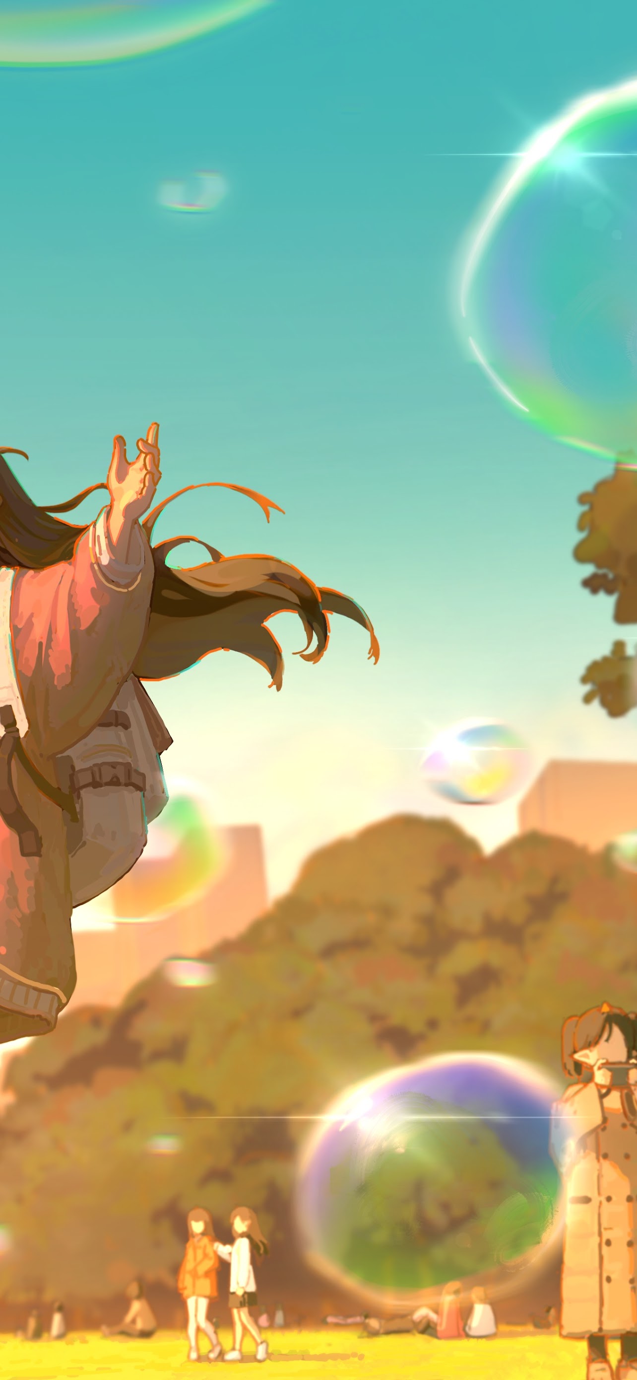 Anime Art, Bubbles, Park, Illustration 5K Desktop and Mobile Wallpaper Background with a maximum resolution of 5221x2941 px.