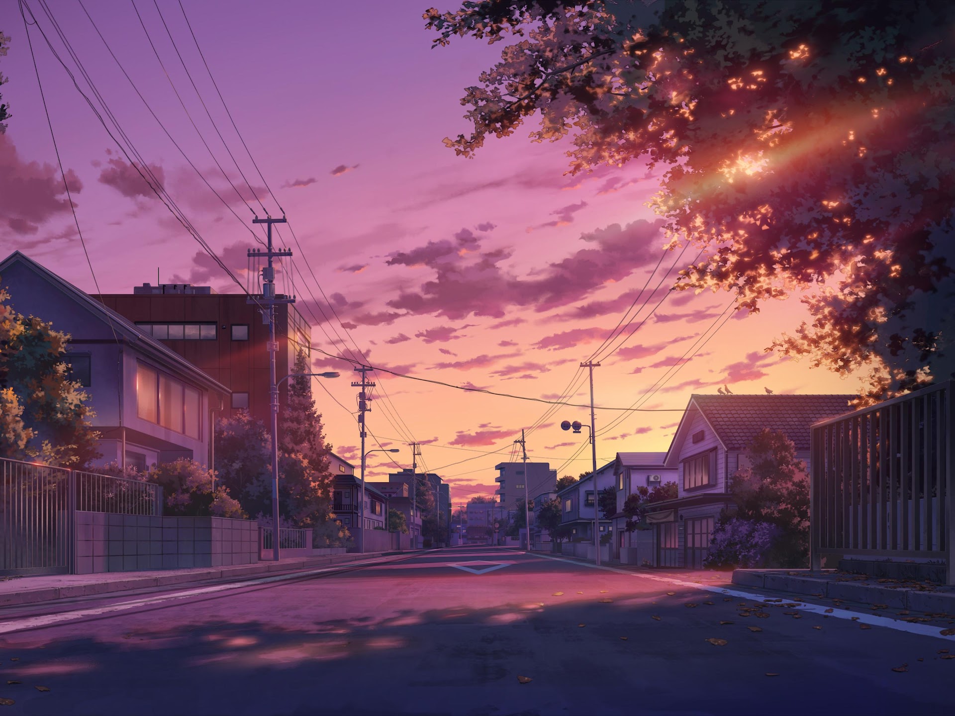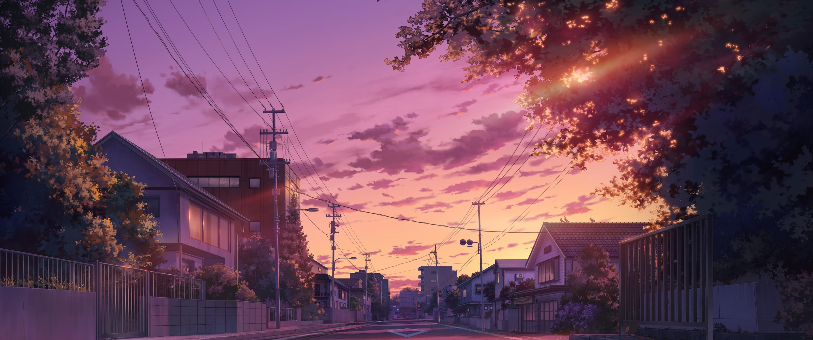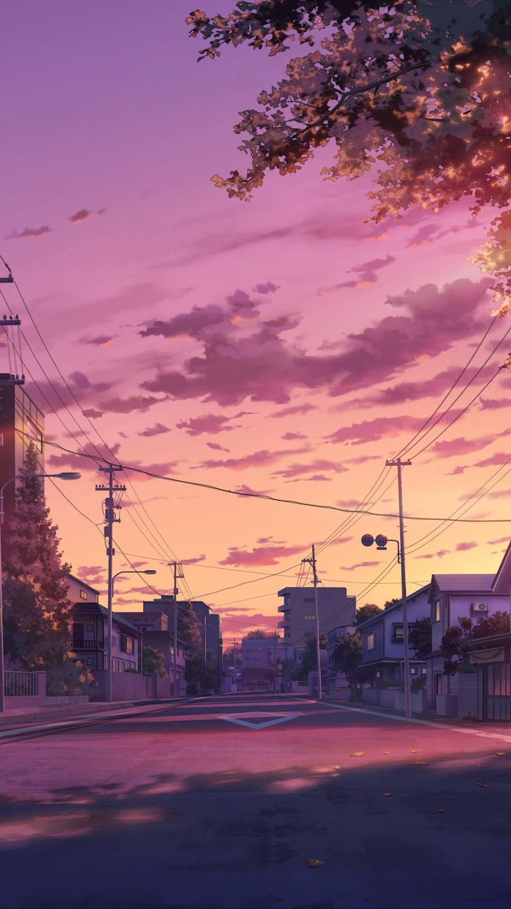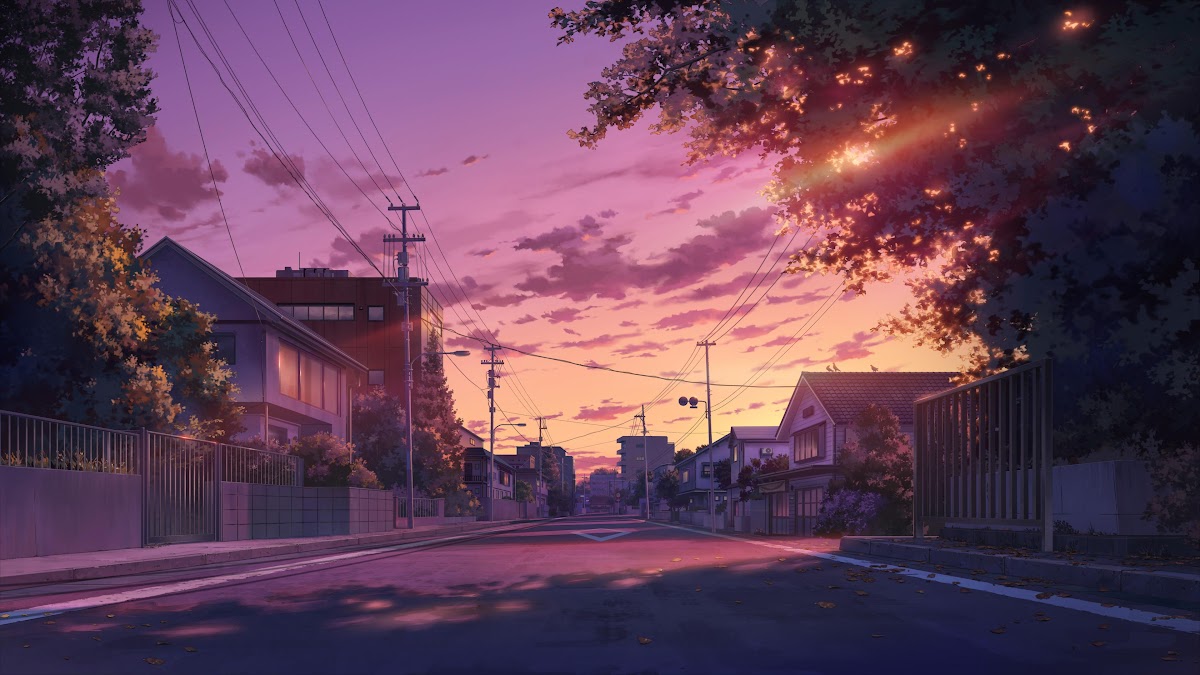 Anime Scenery, Street, Sunset, Evening 4K Desktop and Mobile Wallpaper Background with a maximum resolution of 3840x2160 px.