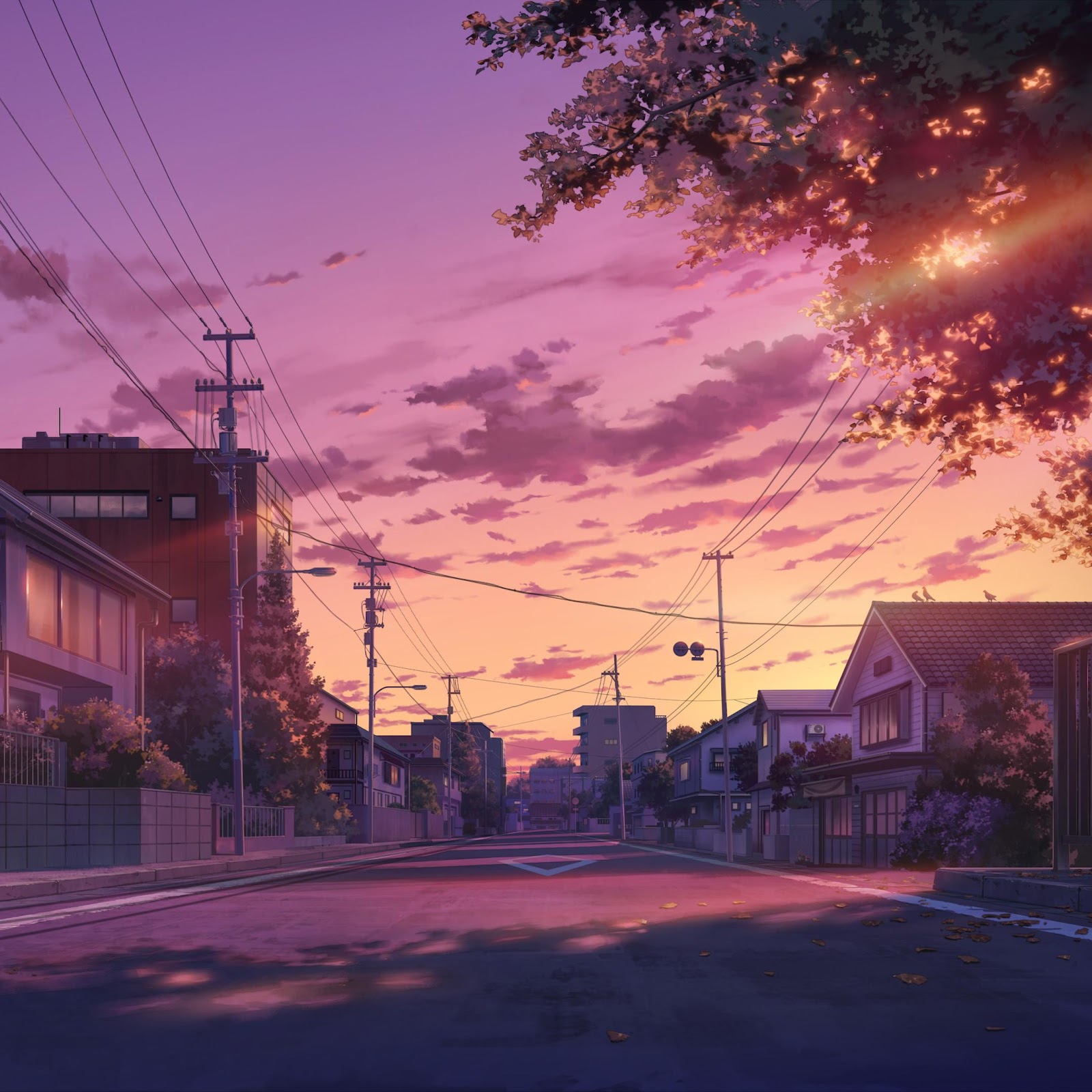 Anime Scenery, Street, Sunset, Evening 4K Desktop and Mobile Wallpaper Background with a maximum resolution of 3840x2160 px.
