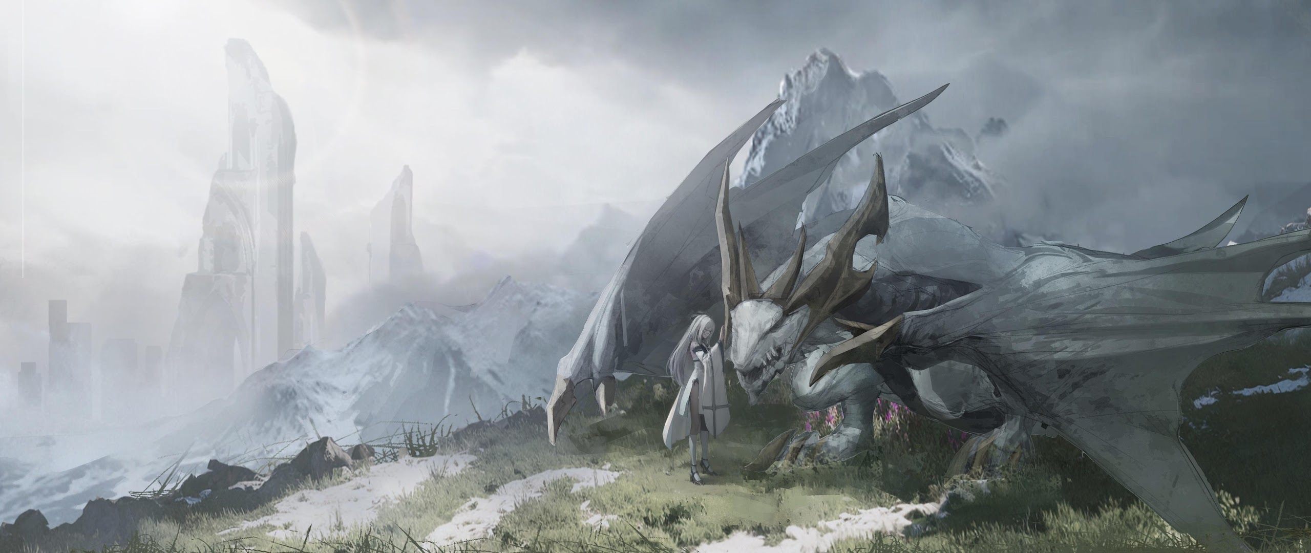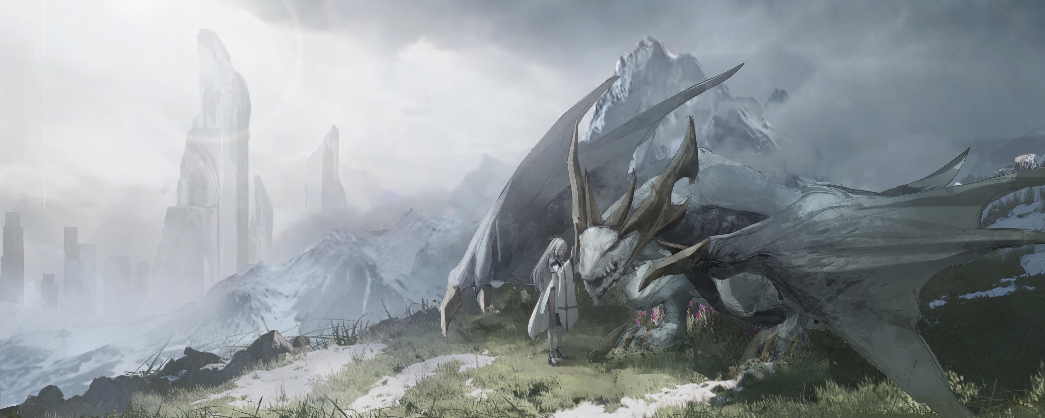 Fantasy Art, Dragon, Anime, Landscape 2K Desktop and Mobile Wallpaper Background with a maximum resolution of 4096x1638 px.