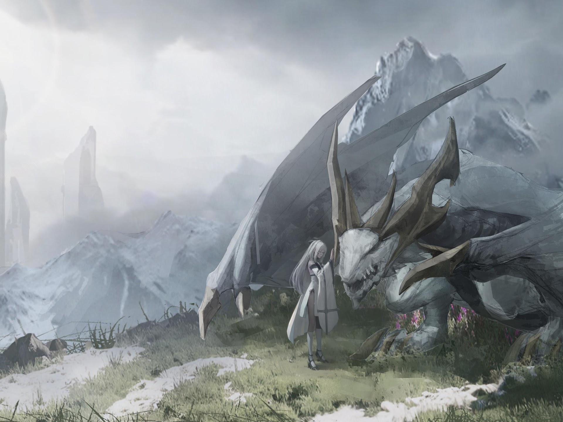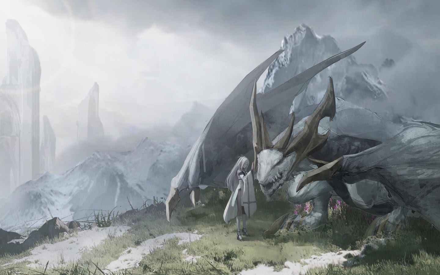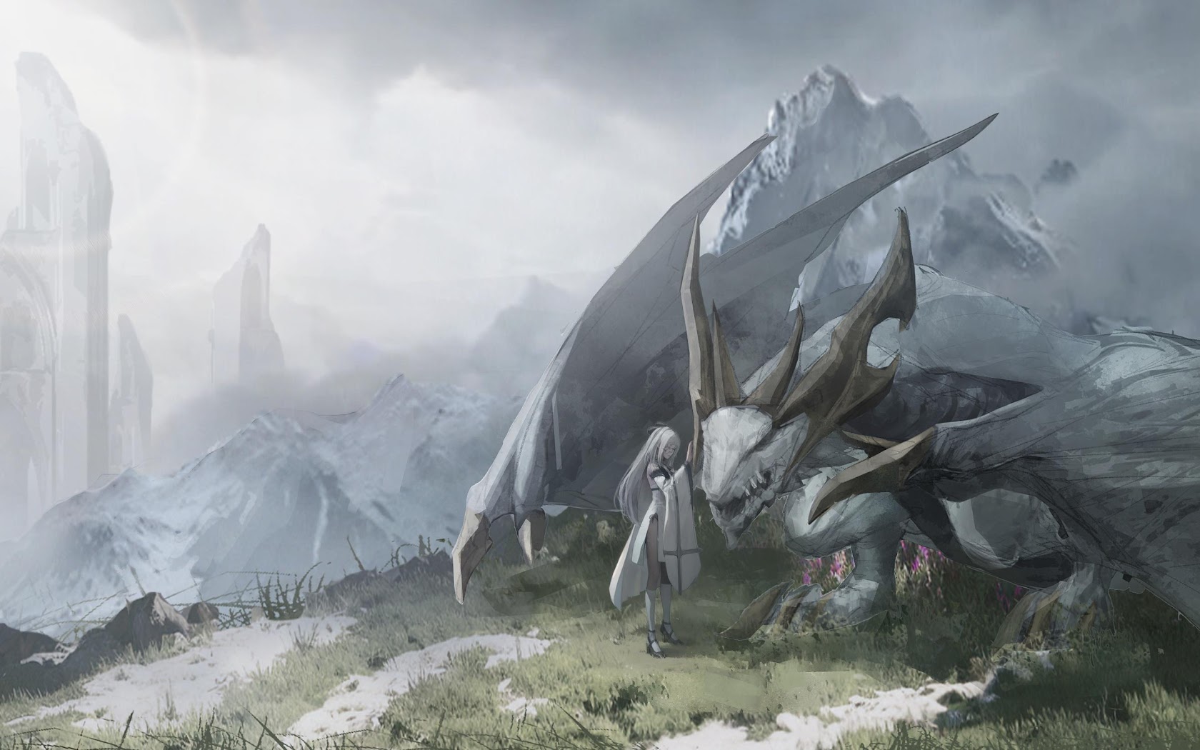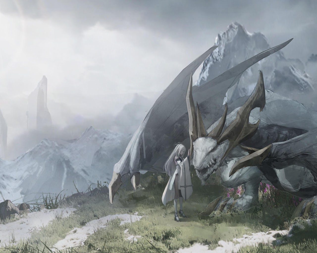 Fantasy Art, Dragon, Anime, Landscape 2K Desktop Wallpaper