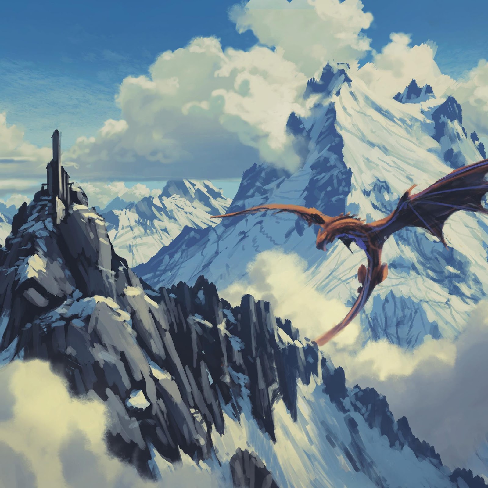 Fantasy Art, Dragon, Mountain Landscape, Digital Painting 2K Desktop Wallpaper