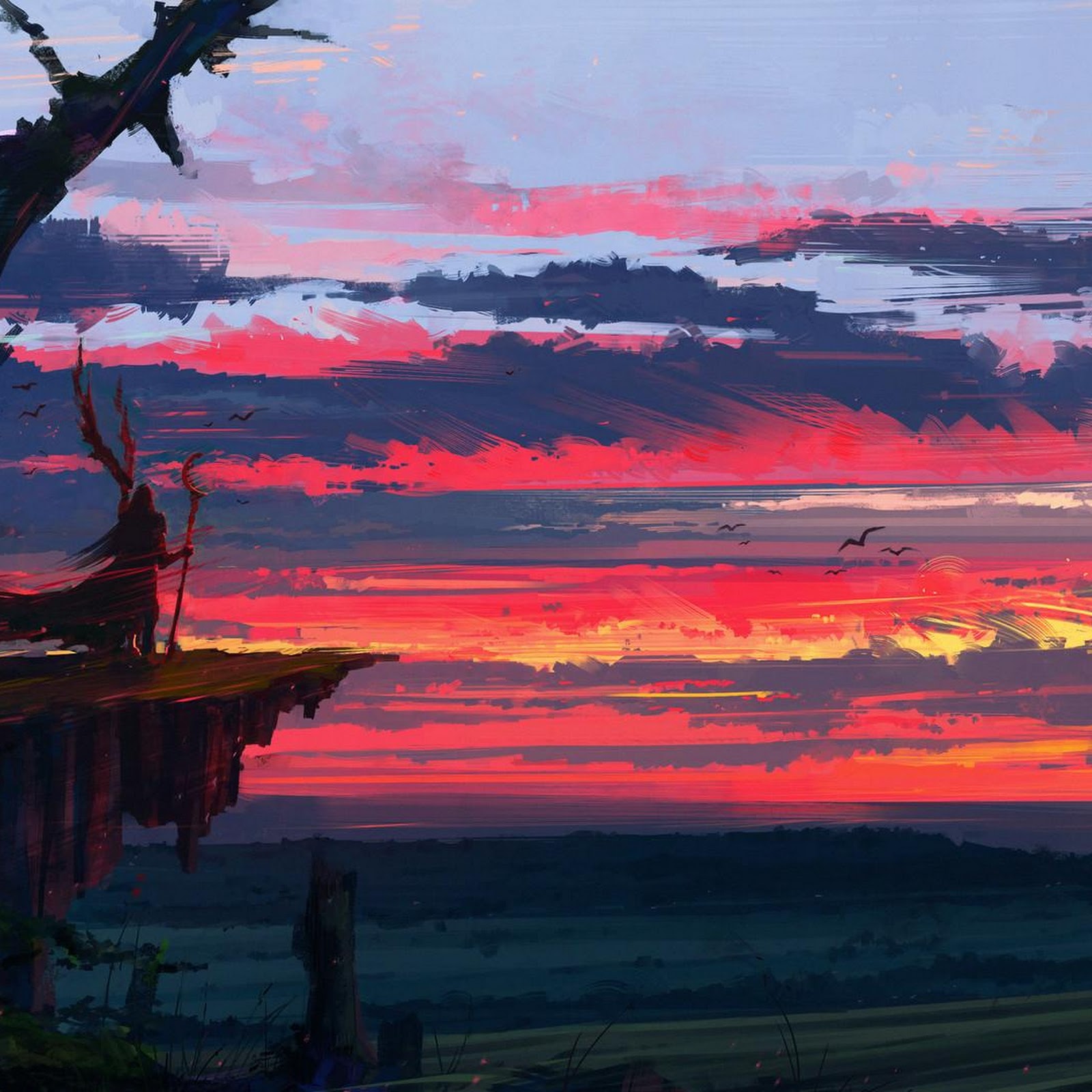 Fantasy Landscape, Digital Art, Sunset Painting, Scenic View Full HD Desktop and Mobile Wallpaper Background with a maximum resolution of 1920x1080 px.