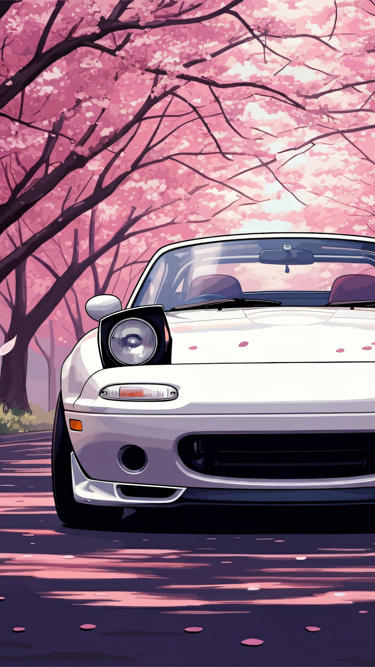Miata, Jdm, Car Illustration, Cherry Blossoms 5K iPhone Wallpaper Background with a maximum resolution of 3240x5760 px.
