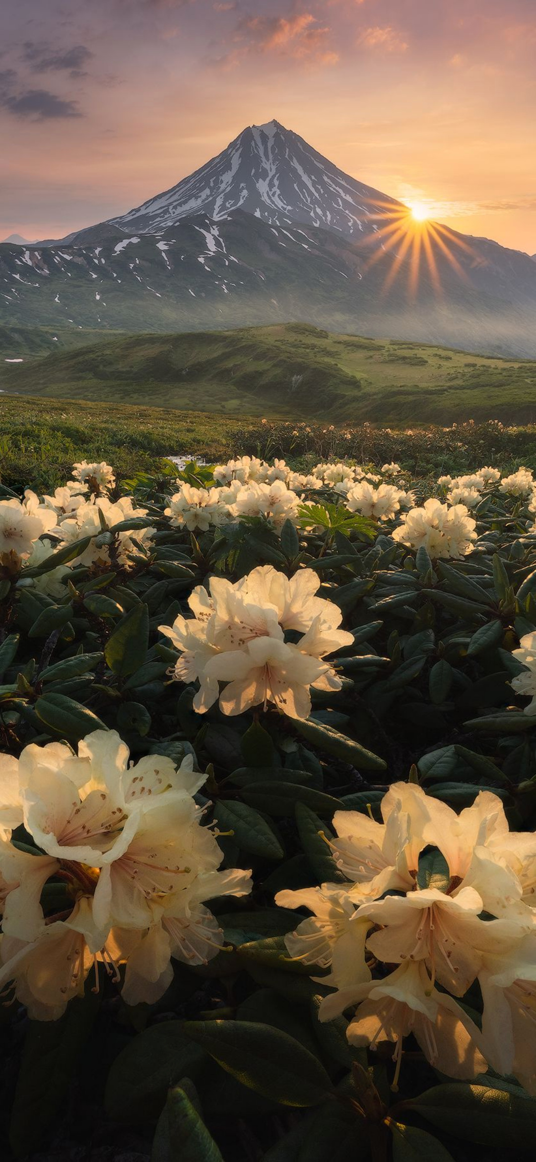 Mountain Landscape, Alpine Meadow, Sunrise, Flowers Full HD iPhone Phone Wallpaper