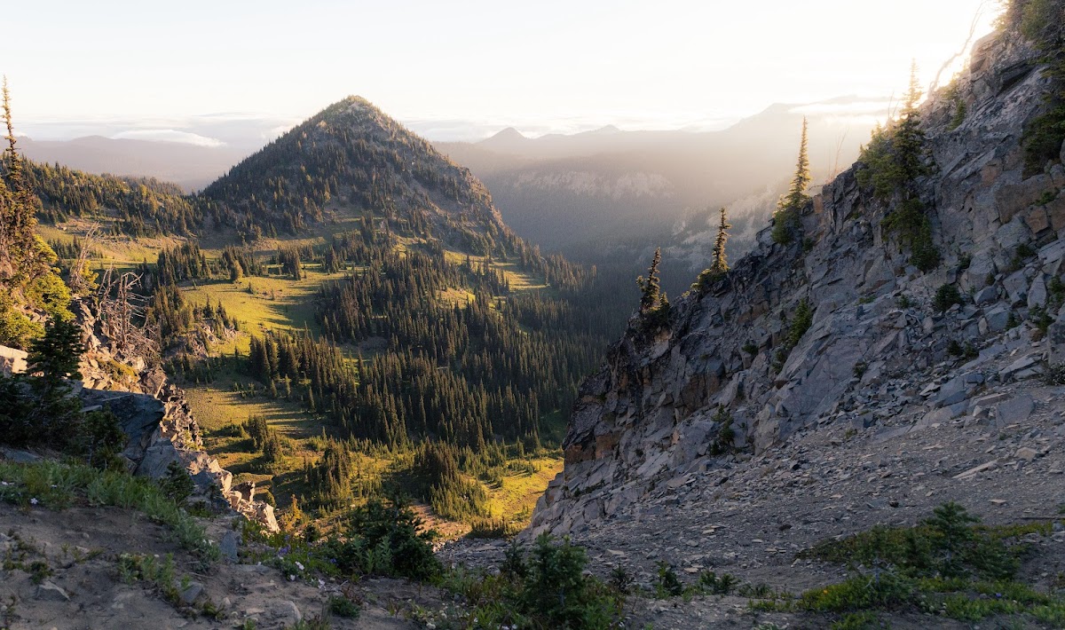 Mountain Landscape, Evergreen Forest, Valley View, Rocky Terrain 5K Desktop and Mobile Wallpaper Background with a maximum resolution of 6240x3691 px.