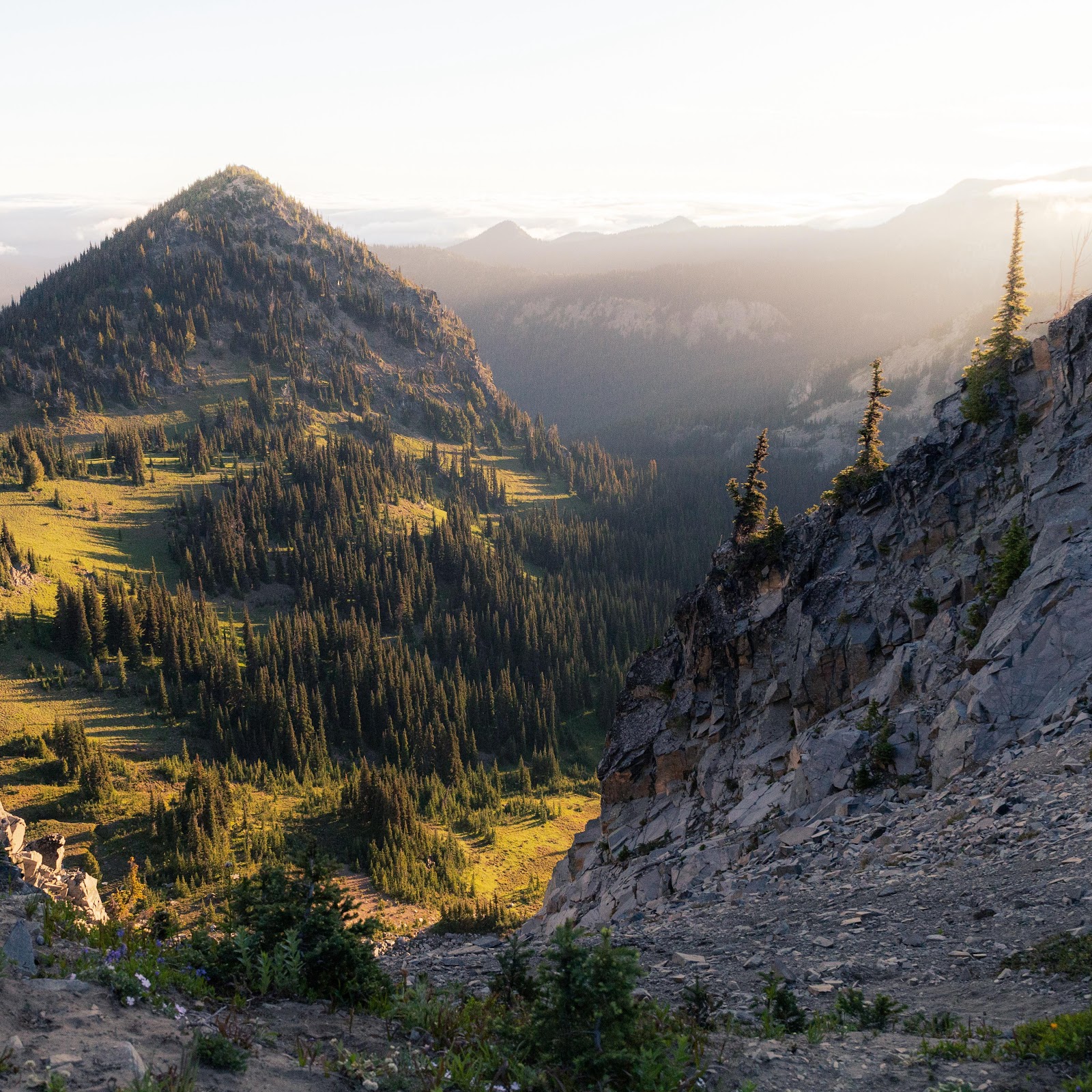Mountain Landscape, Evergreen Forest, Valley View, Rocky Terrain 5K Wallpaper Background (6240x3691)