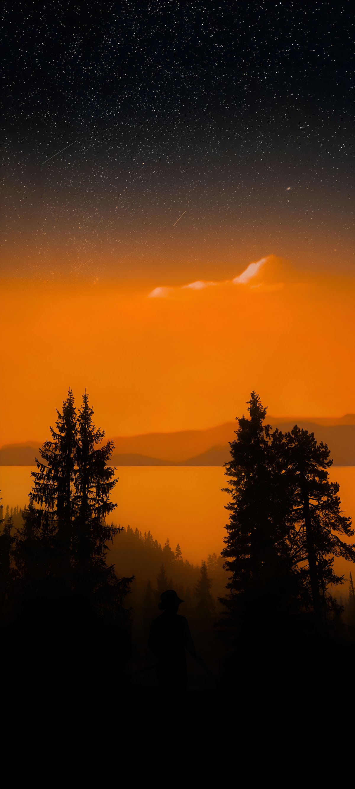 Nightscape, Starry Sky, Forest Silhouette, Landscape Photography 2K iPhone Wallpaper Background (1440x3200)