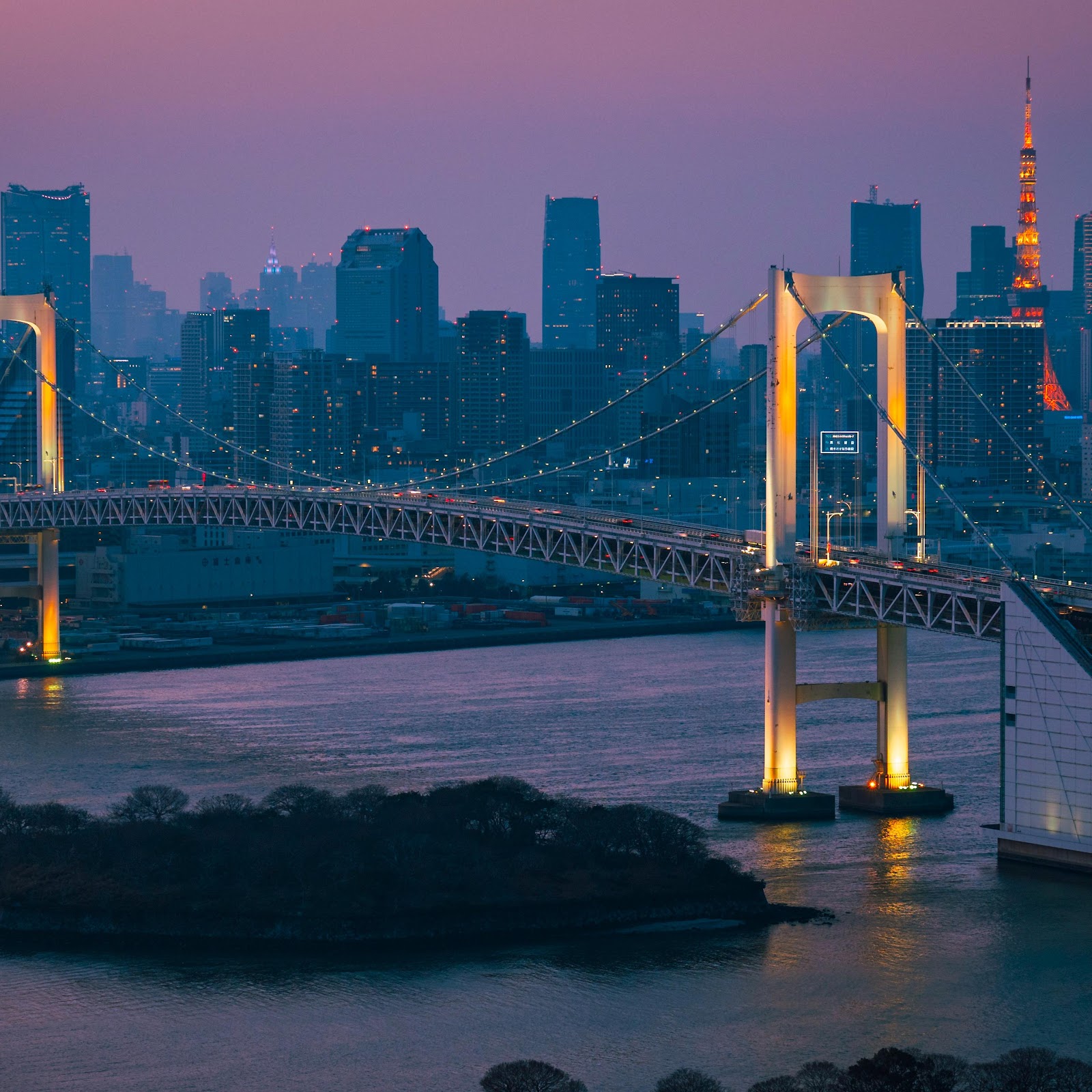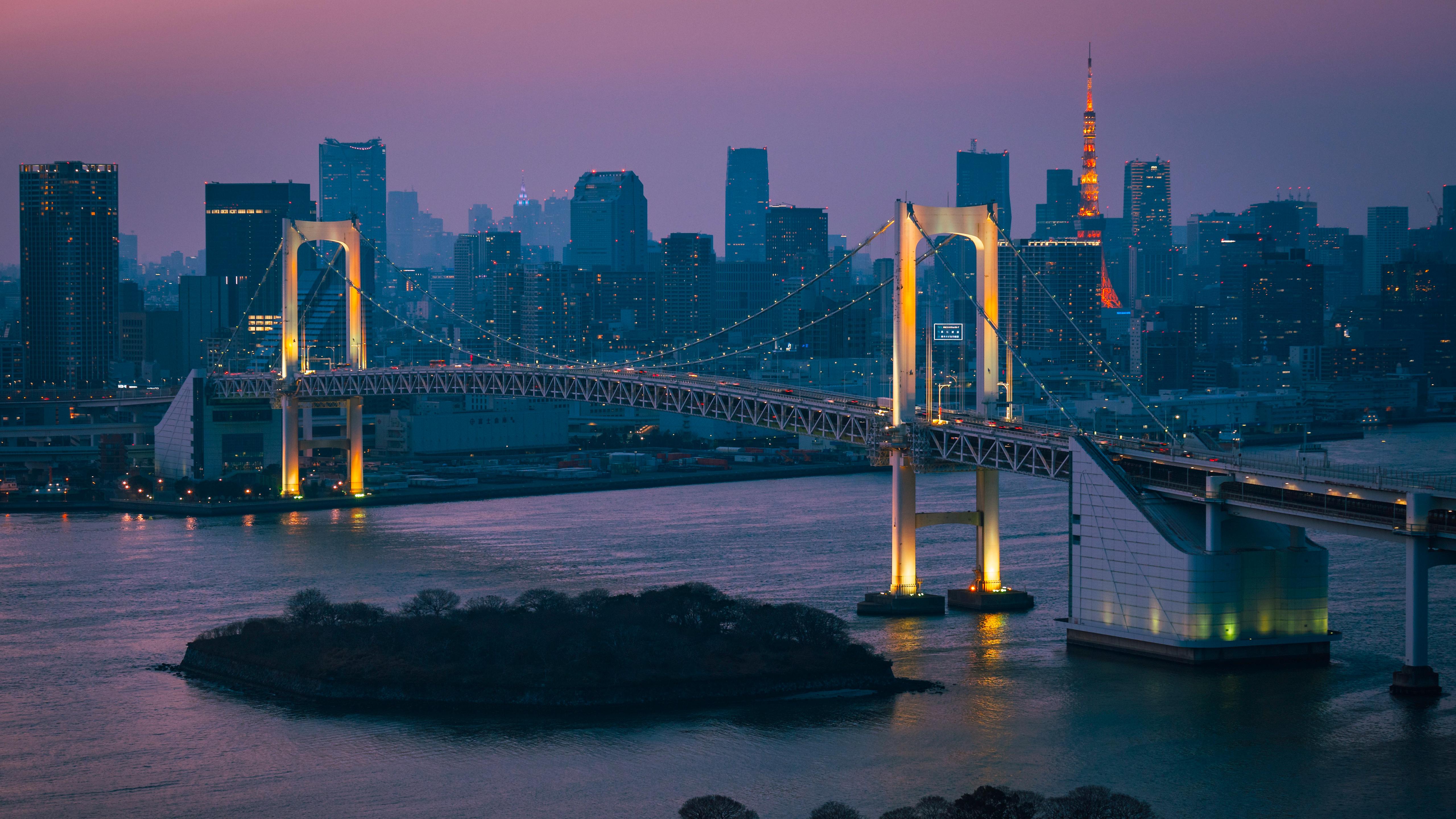 Tokyo, Rainbow Bridge, Cityscape, Nightscape 4K Wallpaper Background (5119x2880)