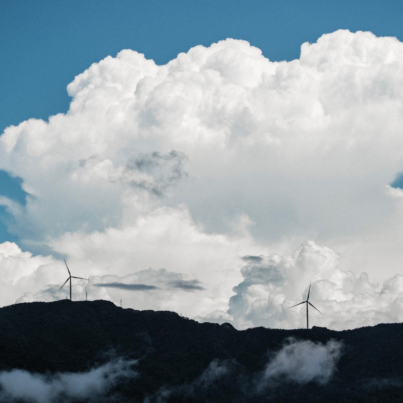 Wind Turbines, Renewable Energy, Mountain Landscape, Cumulus Clouds 4K Desktop Wallpaper