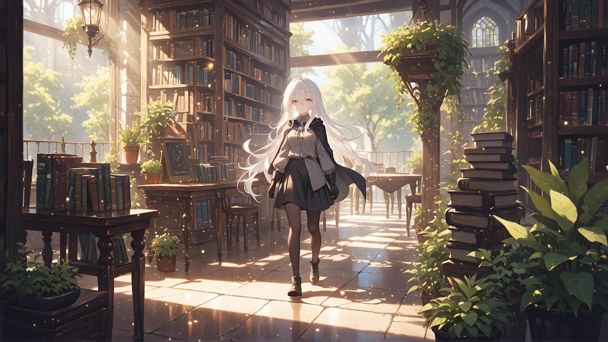 Anime Library, Fantasy Art, Book Illustration, Interior Design Full HD Desktop and Mobile Wallpaper Background with a maximum resolution of 1920x1080 px.