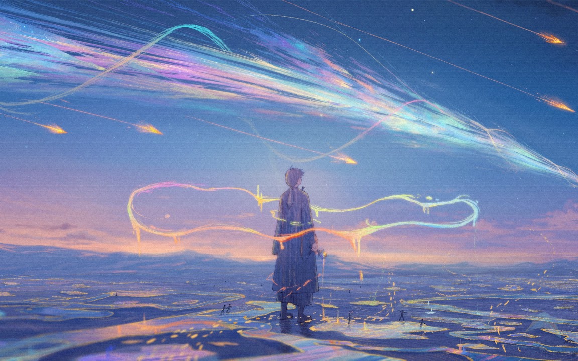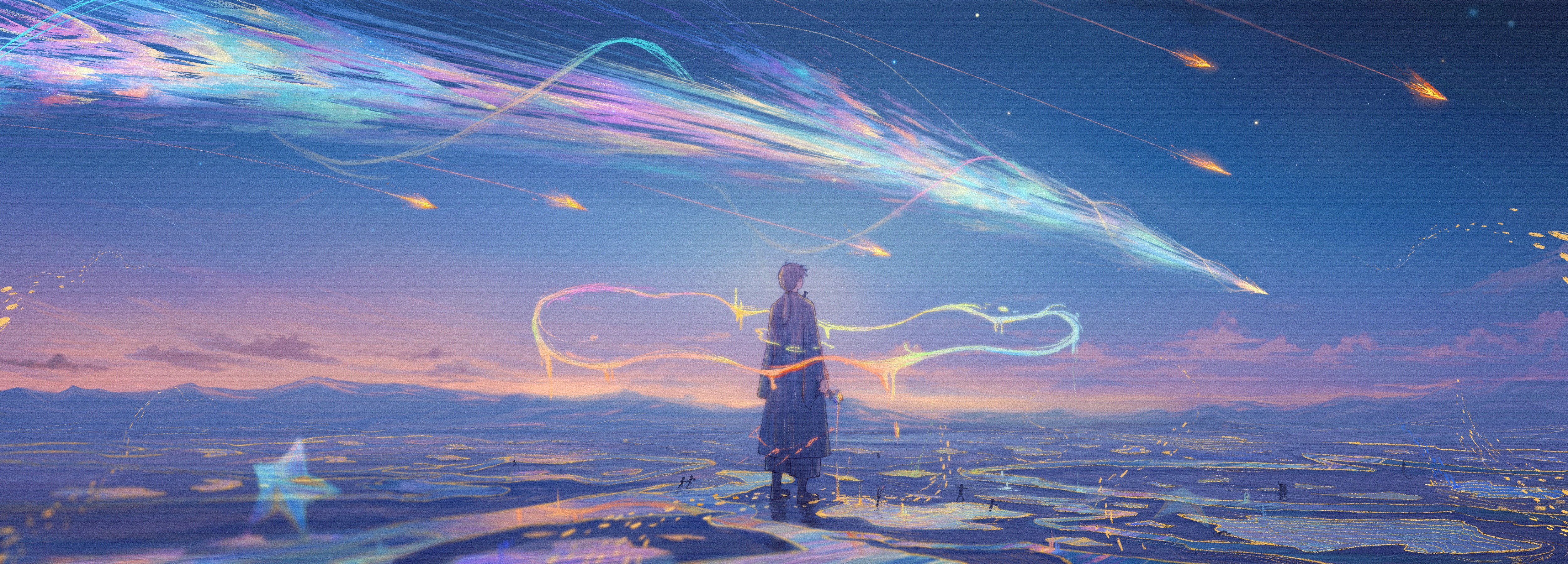 Anime, Scenery, Illustration, Comet 2K Desktop and Mobile Wallpaper Background with a maximum resolution of 5000x1800 px.
