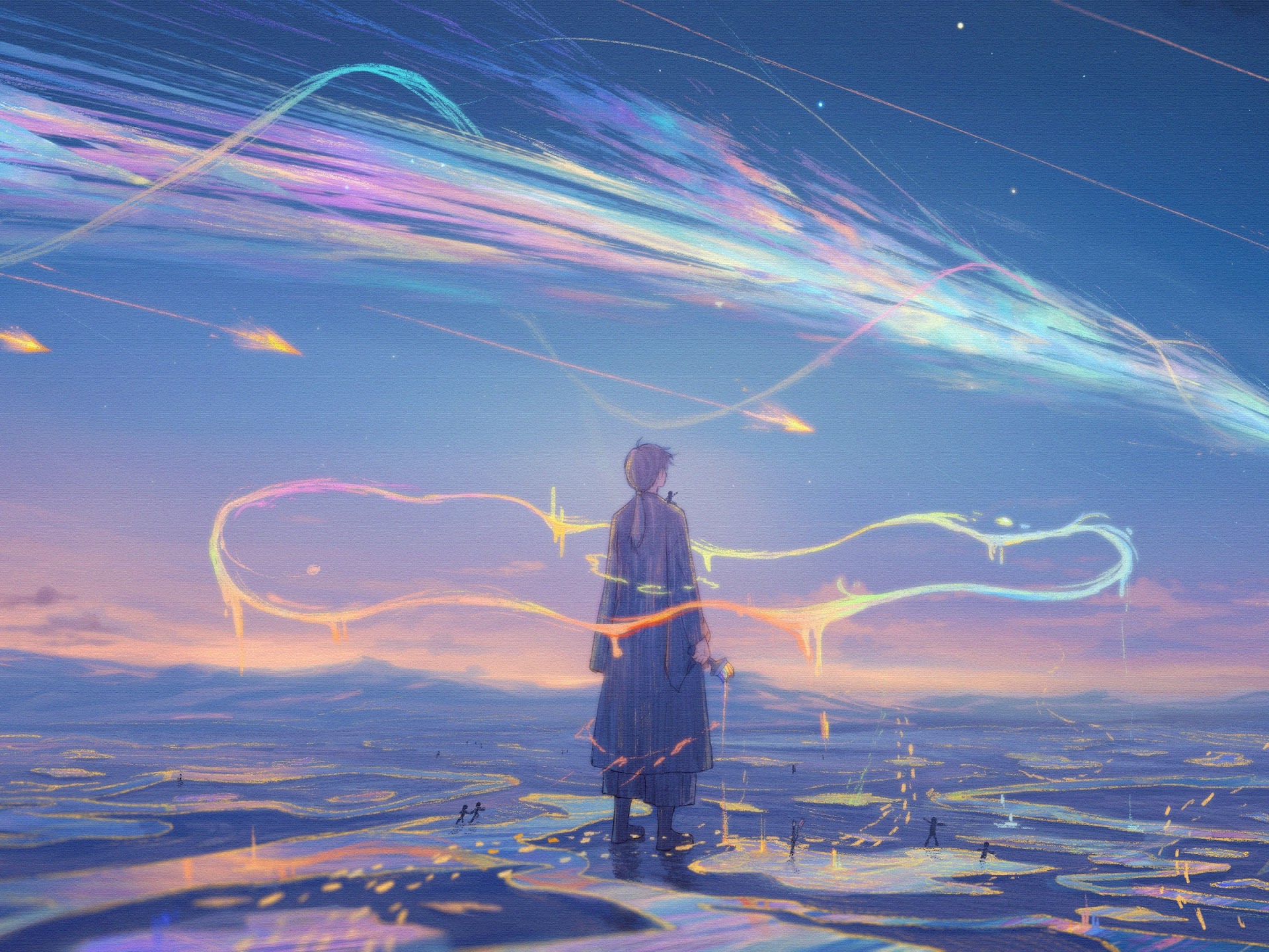 Anime, Scenery, Illustration, Comet 2K Desktop and Mobile Wallpaper Background with a maximum resolution of 5000x1800 px.