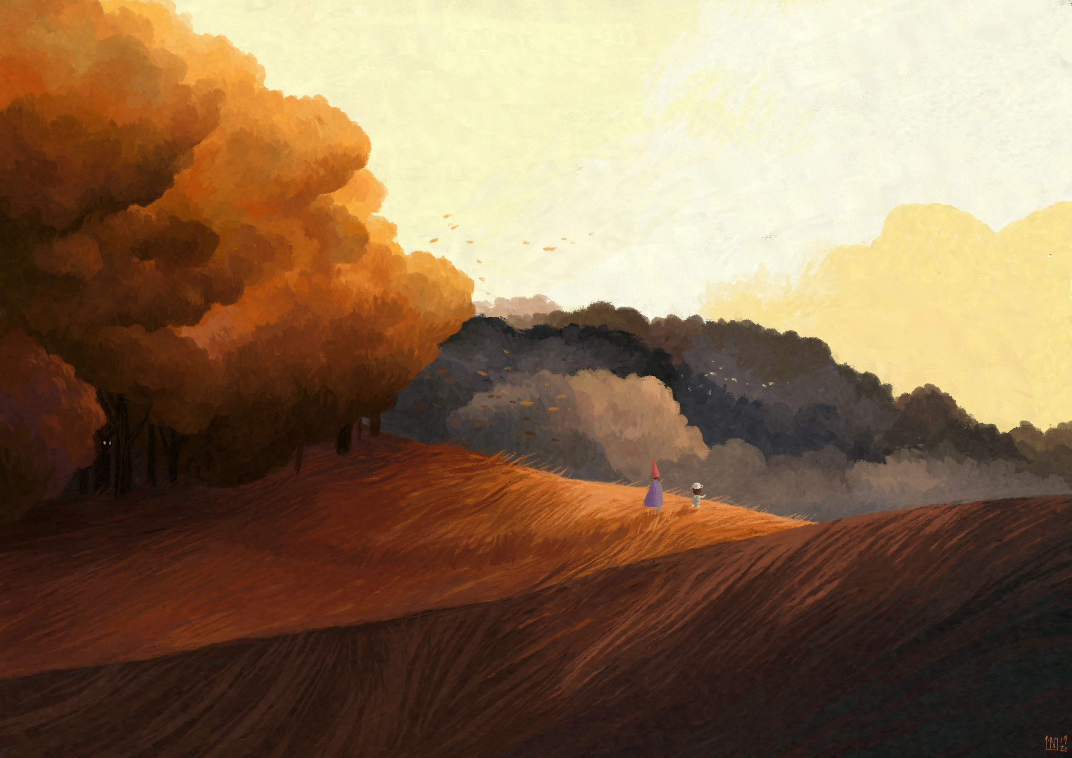 Autumn Scenery, Illustration, Landscape Painting, Fantasy Art 2K Desktop and Mobile Wallpaper Background with a maximum resolution of 3508x2480 px.