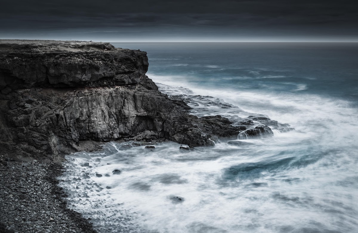 Coastal Landscape, Ocean Photography, Rocky Coastline, Moody Sky 4K Desktop and Mobile Wallpaper Background with a maximum resolution of 4000x2603 px.